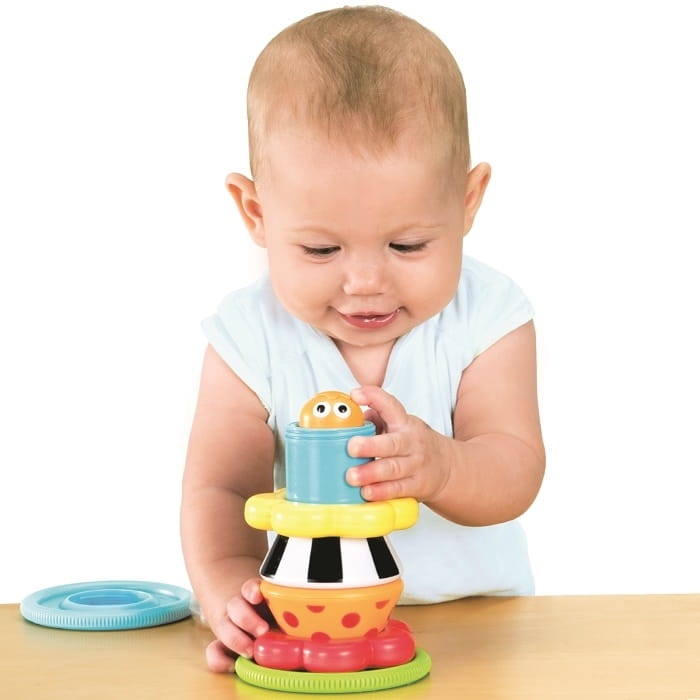 Wesoła muzyka oraz przyjemny wygląd zachęca do zabawy. Ślimaczek jest zabawką 2w1. Jego "domek" to regularnych rozmiarów nakładanka wieloma elementami o różnych kształtach oraz piszczałką. Rekomendujemy pierwszą zabawę dziecka ślimaczkiem razem z rodzicem, w celu oswojenia się z przedmiotem.