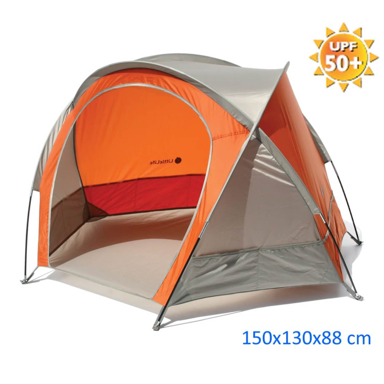 Wszystkie tkaniny użyte do produkcji posiadają ochronę przed słońcem UPF 50+ co oznacza że blokują 97,5-99% promieniowania UVA i UVB. Namiot można łatwo rozłożyć, dla uzyskania większej stabilności podczas wietrznej pogody można również napełnić jego boczne kieszenie piaskiem. Duża powierzchnia w środku zapewni wystarczające miejsce do zabawy albo na krótką drzemkę. Można go spakować do dołączonej torby, dzięki czemu nie zajmie dużo miejsca. Torba posiada wygodny pasek do noszenia na ramieniu.