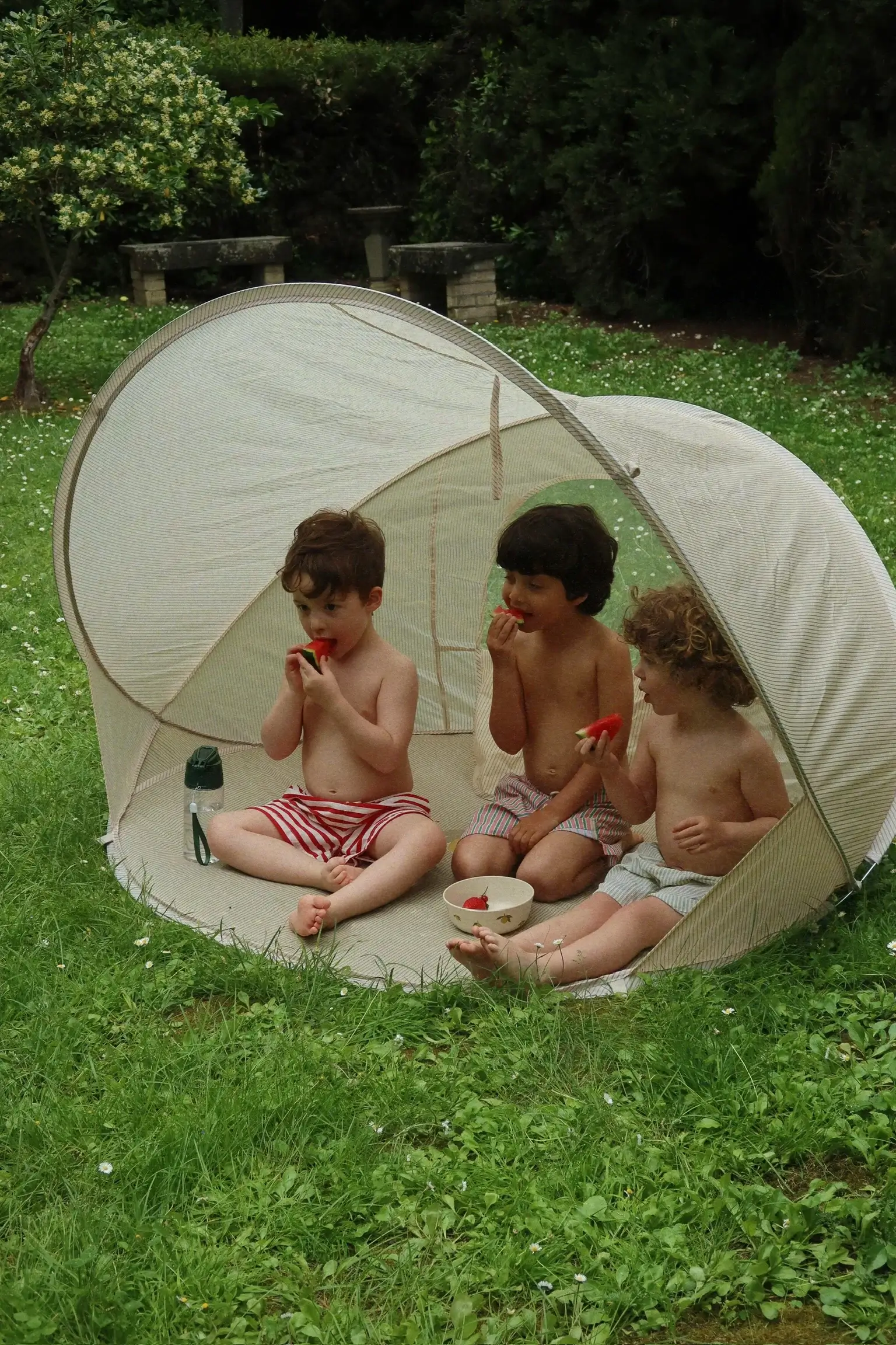 Stwórz dla swojego dziecka przytulną, zacienioną przestrzeń na plaży dzięki praktycznemu namiotowi plażowemu typu pop-up