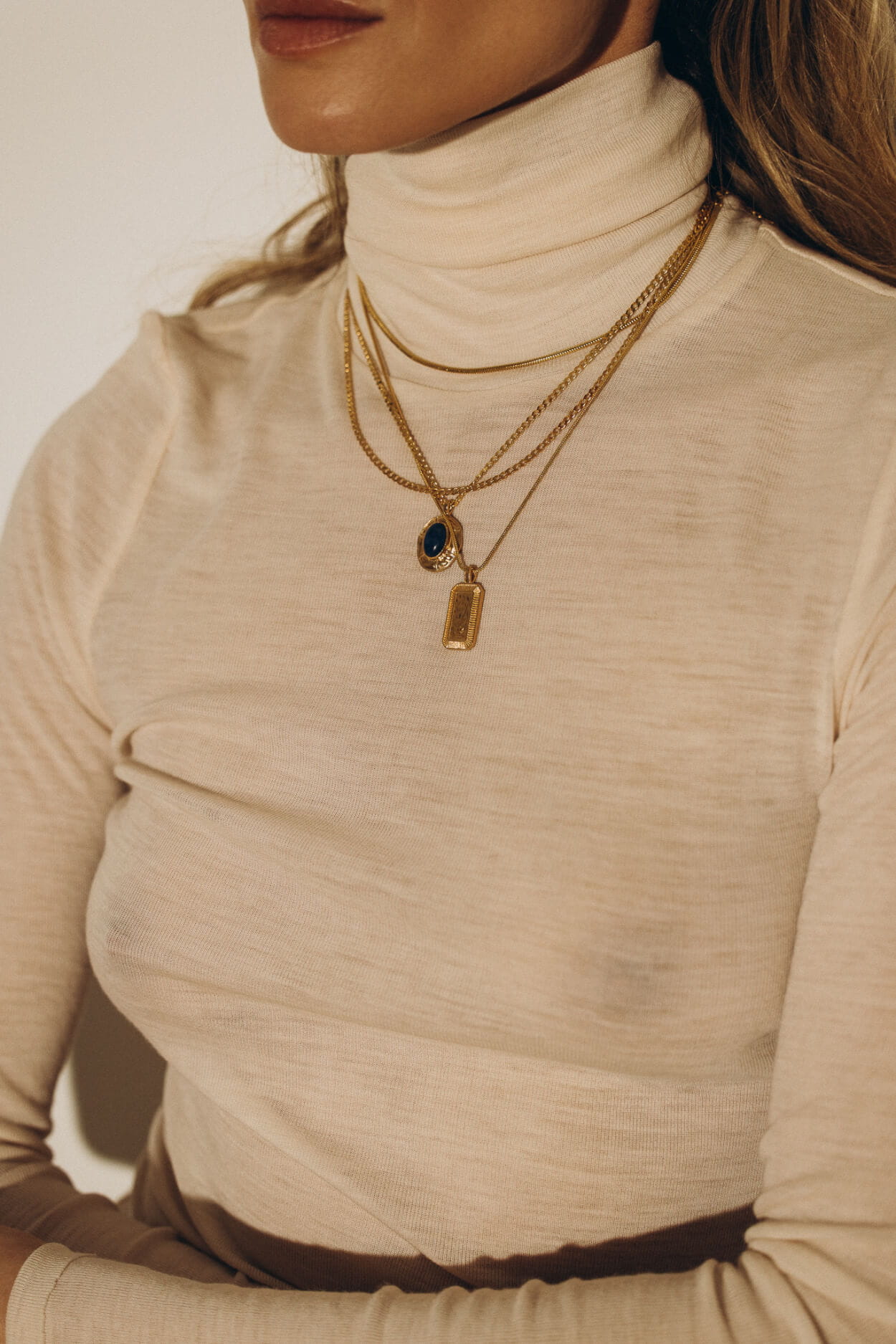 Naszyjnik TRUTH czyli prawda to model z kolekcji (her)itage (dziedzictwo) do której powstania skłoniła wojna. Z dnia na dzień pokazała nam jak wszystko co nas otacza jest kruche i jak łatwo możemy to stracić. To hołd dla starych technik odlewniczych, doceniając tym samym pracę człowieka nie maszyn. Inspirowana biżuterią naszych mam i babć, stworzona w naszych głowach, przelana na papier nareszcie stała się rzeczywistością. Kolekcja powstała we współpracy z ukraińskim złotnikiem i jego zespołem, co w czasie wojny było wyjątkowo istotne. Solidne, ciężkie wisiory w klimacie vintage przypominają o tym, że wszystko co powstaje z sercem i z duszą ma znaczenie i jest ponadczasowe.
