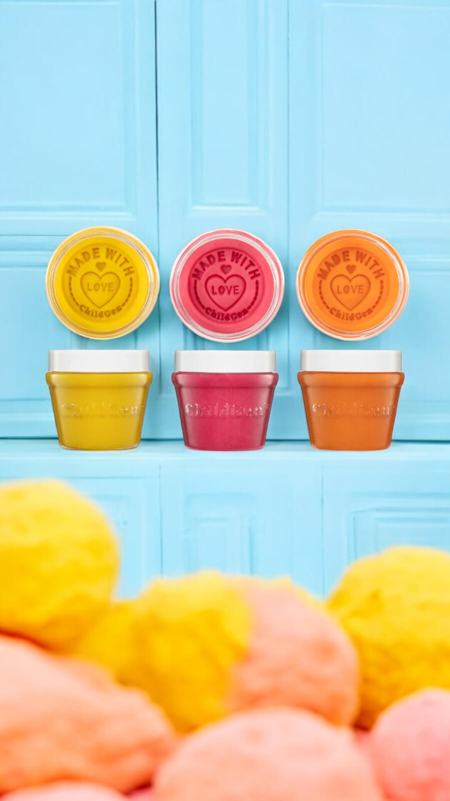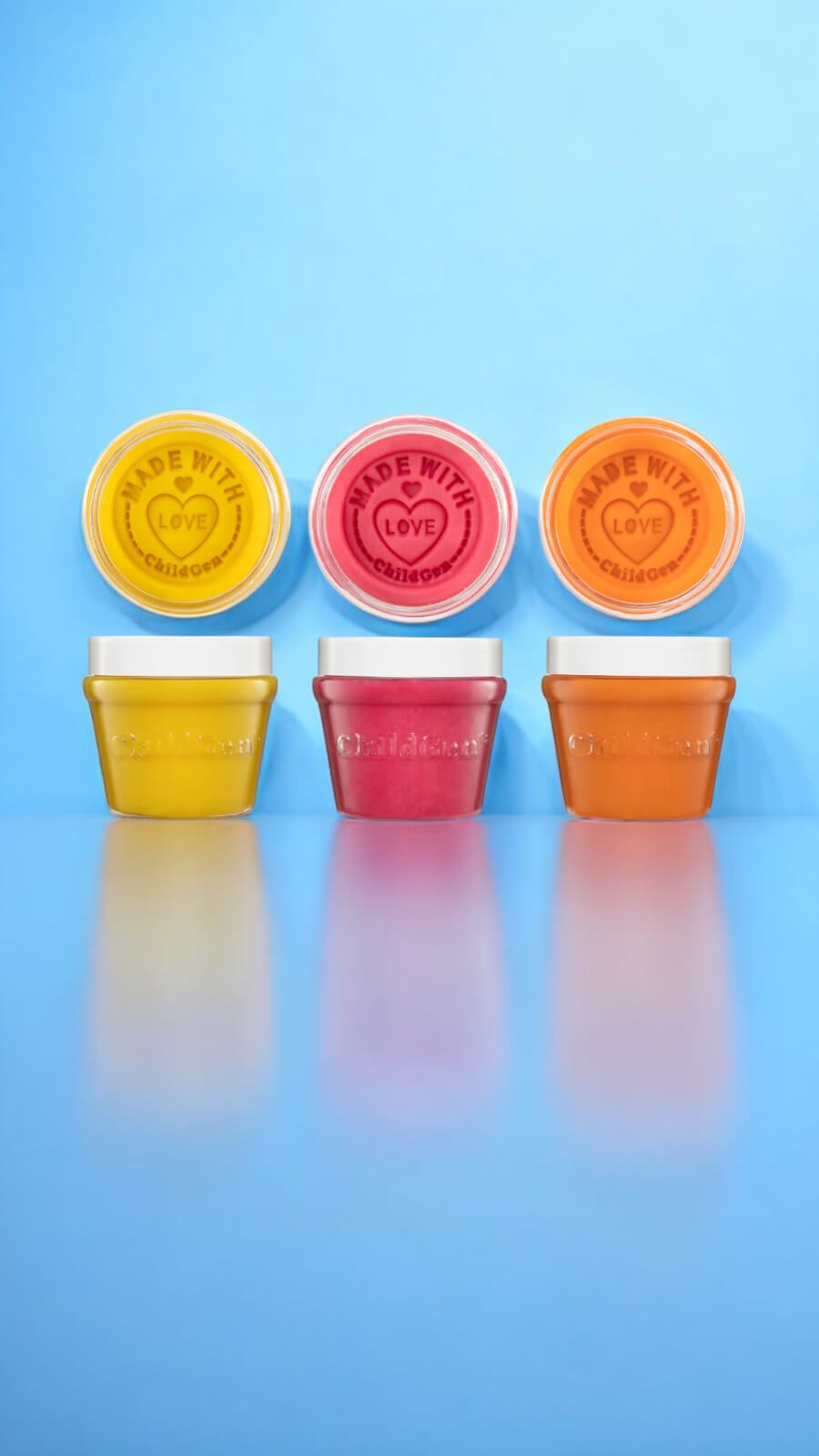 Każdy słoiczek zdobi tłoczona nazwa marki, dodająca mu wyjątkowego, eleganckiego charakteru. Produkt jest zabezpieczony przed pierwszym otwarciem, co gwarantuje świeżość, a na wieczku znajdziesz subtelny napis "make with love - childgen". Zestaw świetnie sprawdzi się jako prezent!