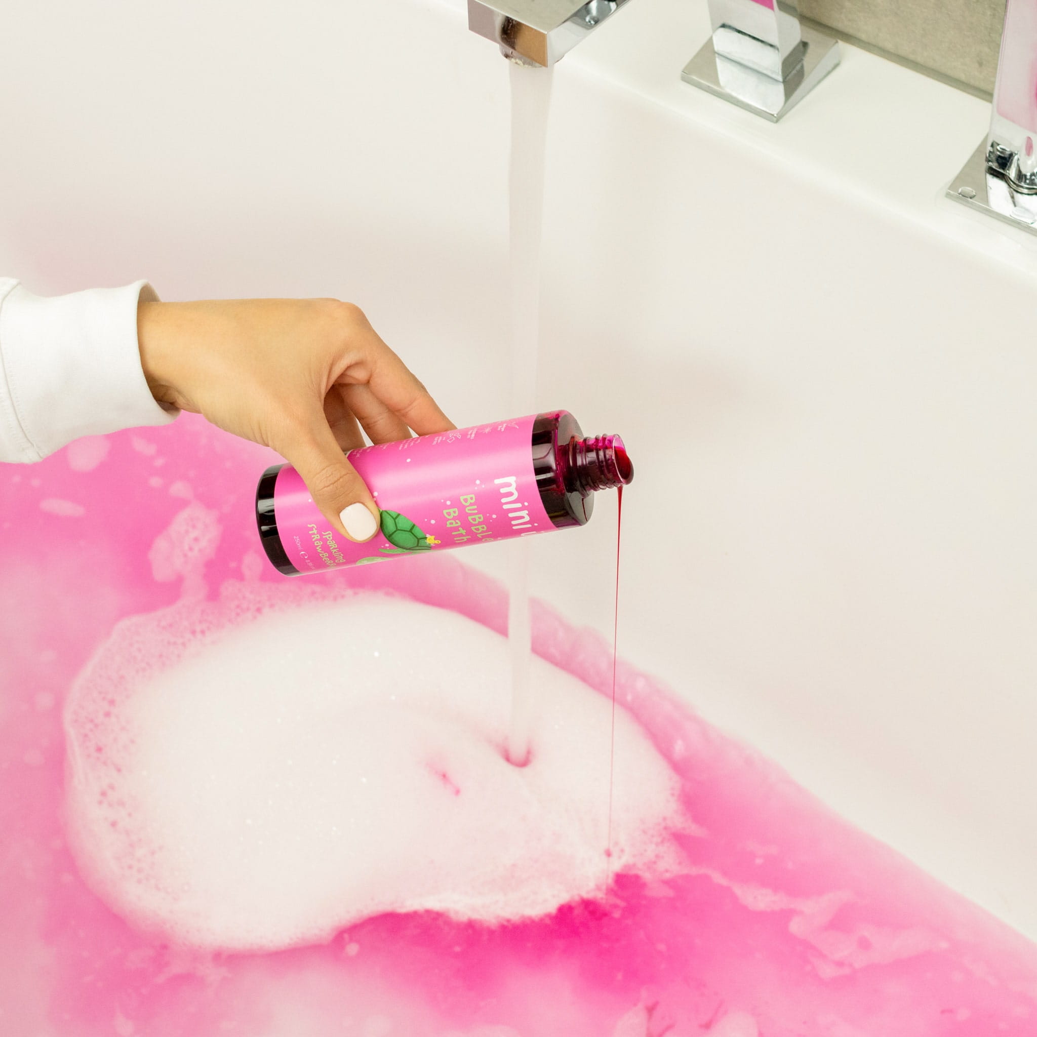 Bąbelkowy płyn do kąpieli Mini U dla dzieci i niemowląt zmienia kolor wody na różowy, nadaje mnóstwo bąbelków, pachnie delikatną truskawką, a do tego wykonany jest z naturalnych i ultradelikatnych dla skóry składników. Z tym produktem już żadna kąpiel nie będzie nudna, a wanna zamieni się w miejsce doskonałej zabawy!