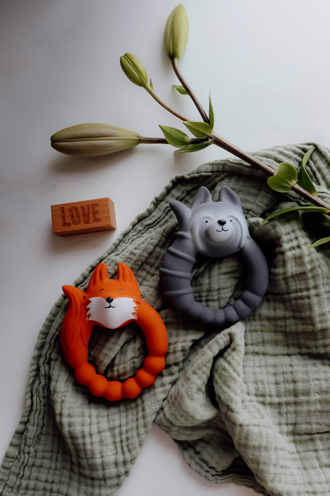Ręcznie wykonany gryzak stworzony w 100% z naturalnego kauczuku