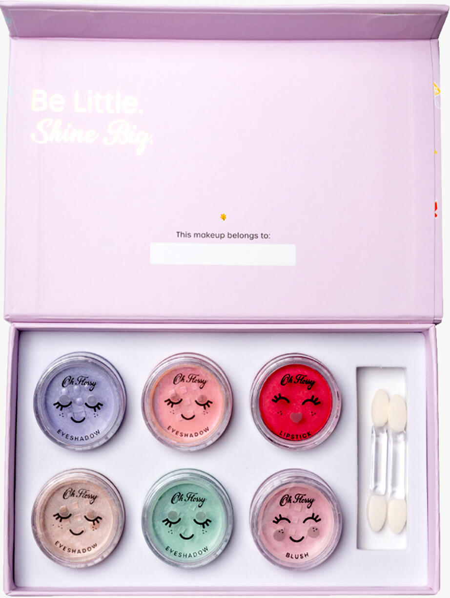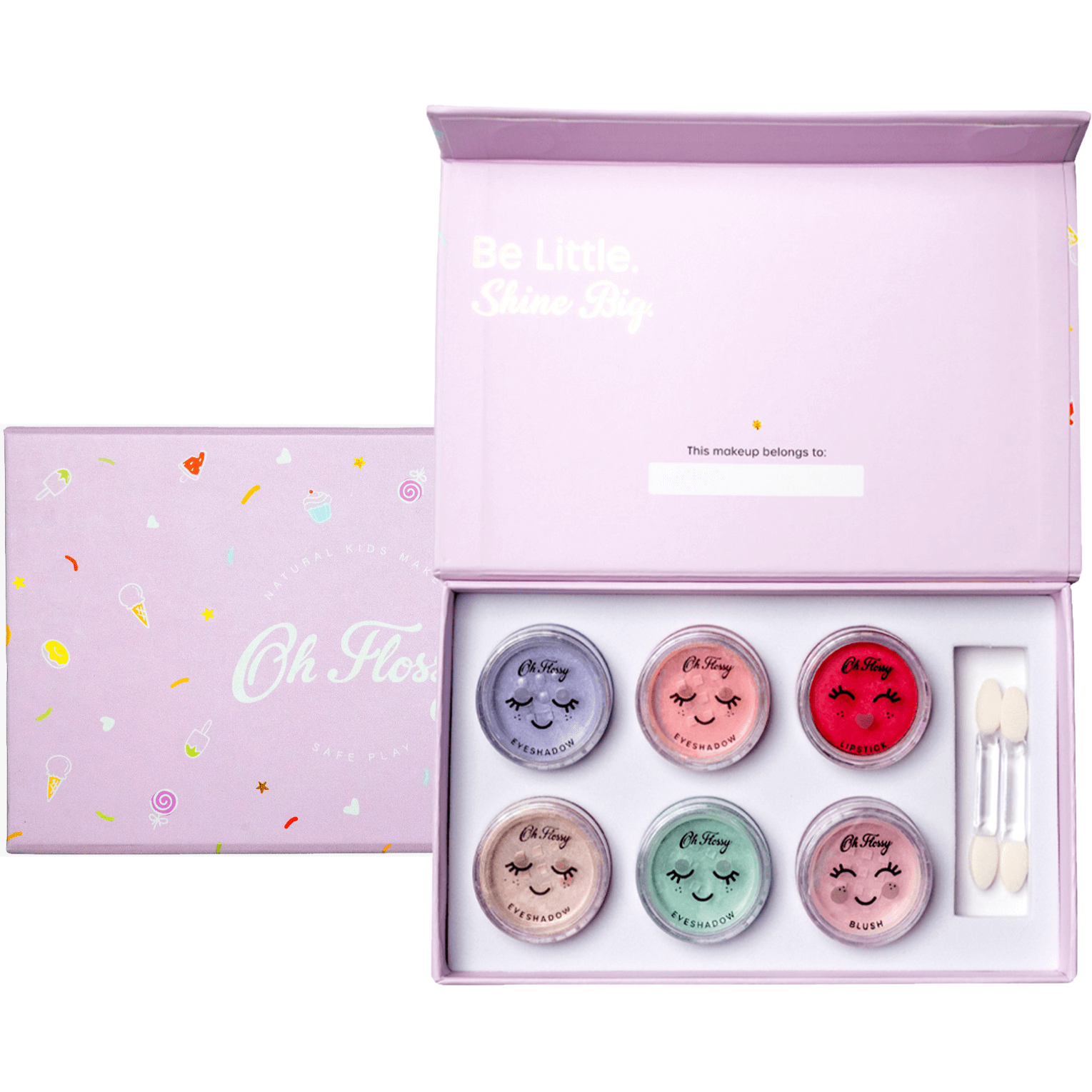 Zestaw Sweet Treat do makijażu marki Oh Flossy to prawdziwy hit. Przepięknie zaprojektowany, idealnie nadaje się dla dzieci, które uwielbiają kreatywną zabawę, a jednocześnie jest bezpieczny dla ich delikatnej skóry, chroniąc ją przed działaniem kosmetyków dla dorosłych. Zamknięty w eleganckim pudełku z magnetycznym zamknięciem, stanowi wyjątkowy prezent na specjalne okazje.