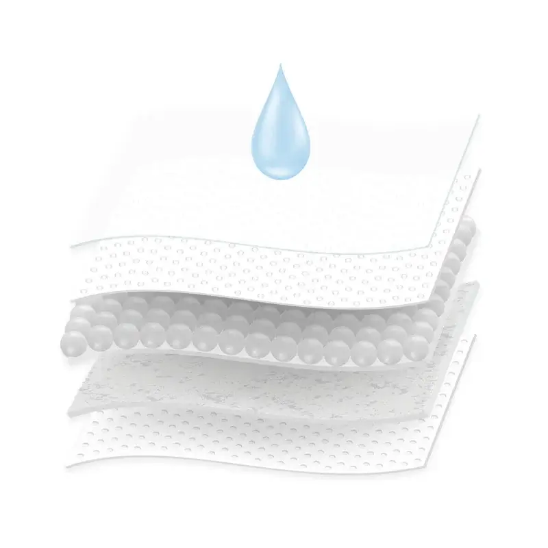 Jak to się dzieje, że ultracienka wkładka absorbuje duże ilości płynu? Sekret jej doskonałej chłonności tkwi w warstwie składającej się z superabsorbujących polimerów japońskiej produkcji. - NAKLEJKI STABILIZUJĄCE