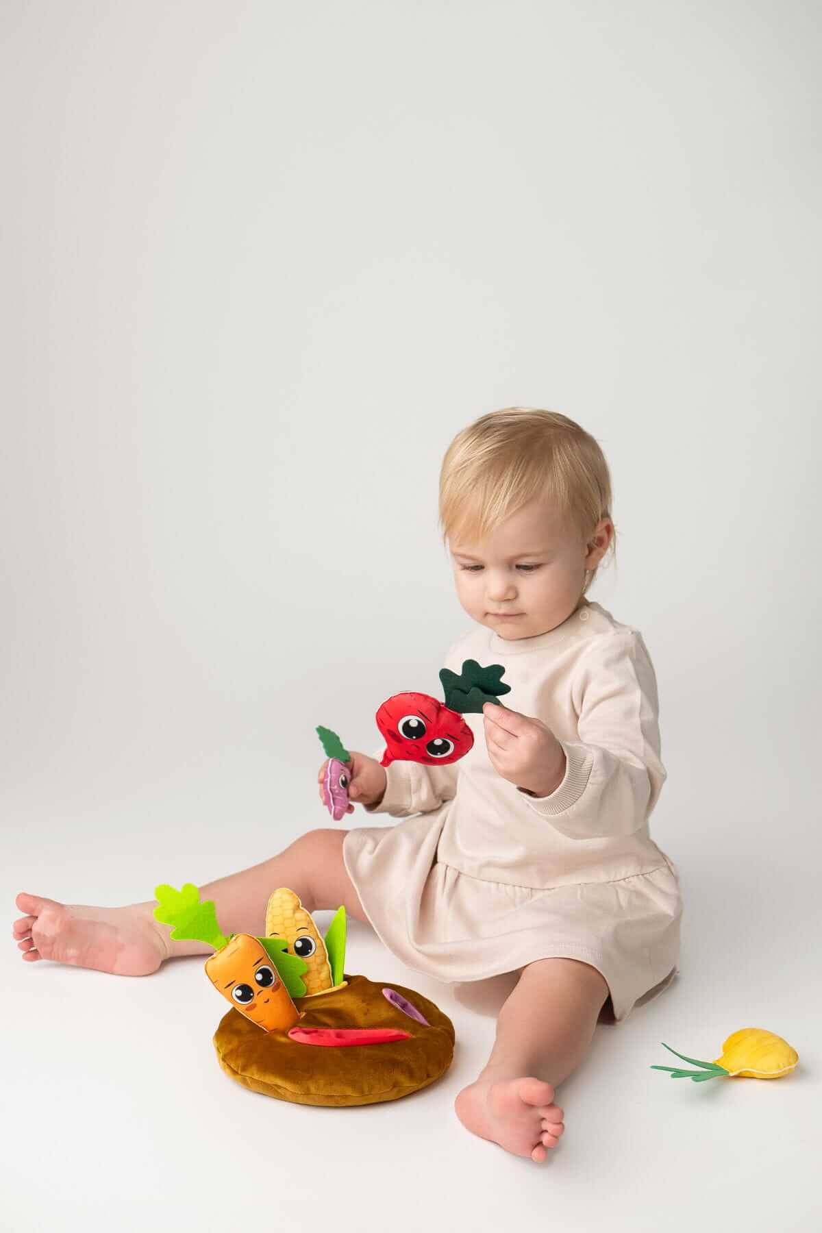 Ogródek Warzywny to urocza zabawka sensoryczna dedykowana dzieciom powyżej 9 miesiąca życia