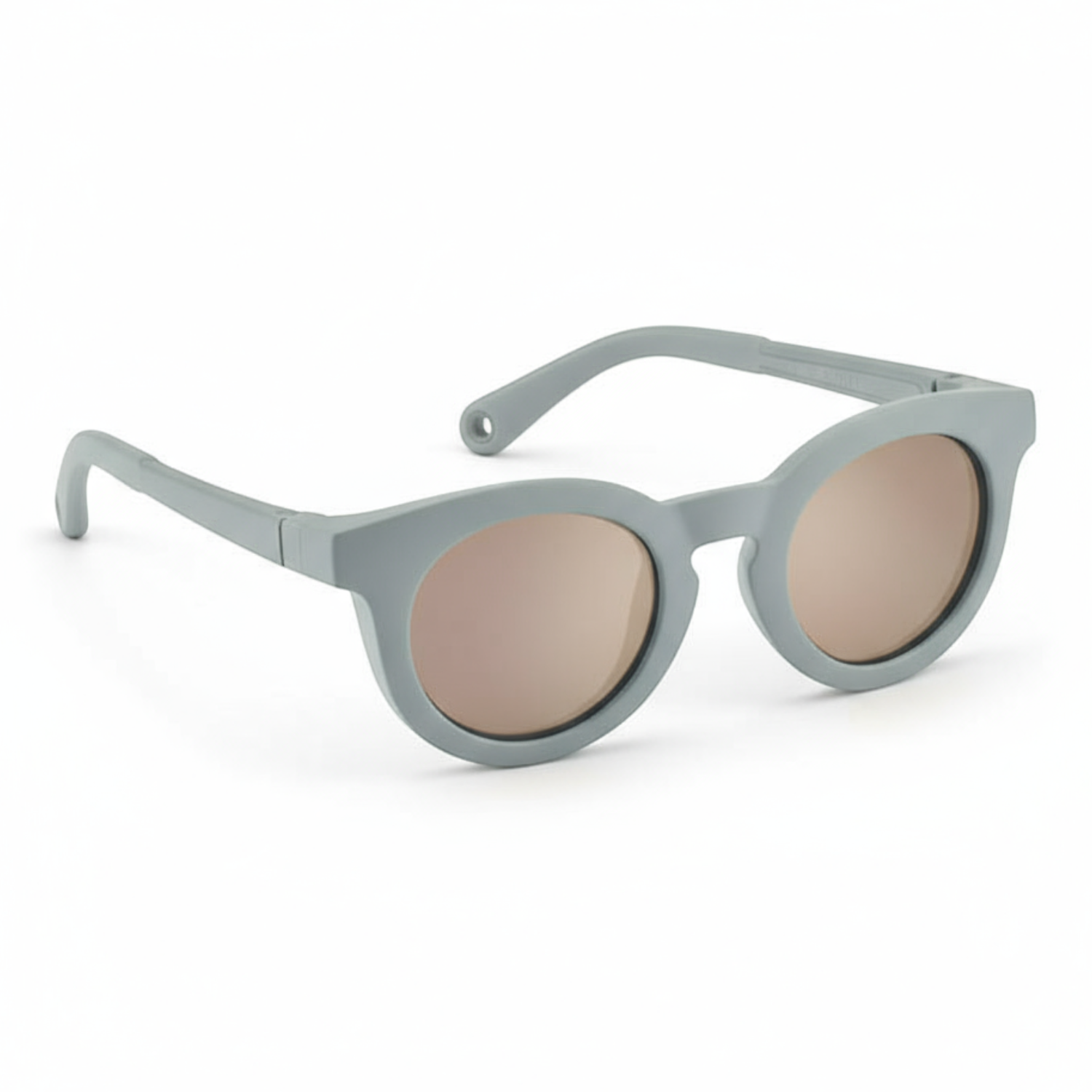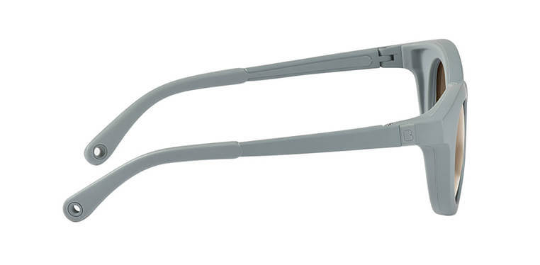 Antypoślizgowe, zakrzywione ramiona nie uciskają głowy dziecka, są dobrze dopasowane i pozostają na miejscu, także podczas typowych dziecięcych aktywności. Profilowanie strefy nosa nawiązuje do stylu vintage, jest uniwersalne i wyjątkowo stabilne, a ponadto wraz ze strefą skroni wykonane zostało w technologii Fit z elastycznego, trwałego tworzywa, które dopasowuje się do kształtu twarzy. Szczególny, obły kształt rozbudowanych oprawek zabezpiecza oczy malucha przed promieniami słonecznymi wpadającymi również z boku. Specjalne, nietłukące się „szkiełka” w kolorze ciemnobrązowym to soczewki kategorii 3, która gwarantuje maksymalną, 100% ochronę przed promieniami UV. Nadają się do ekspozycji na słońce również na plaży czy w górach. Okulary posiadają regulowane zauszniki 360° oraz elastyczną opaskę, którą można w razie potrzeby zamocować na klik (dzięki silikonowym zaczepom) dla optymalnego komfortu.