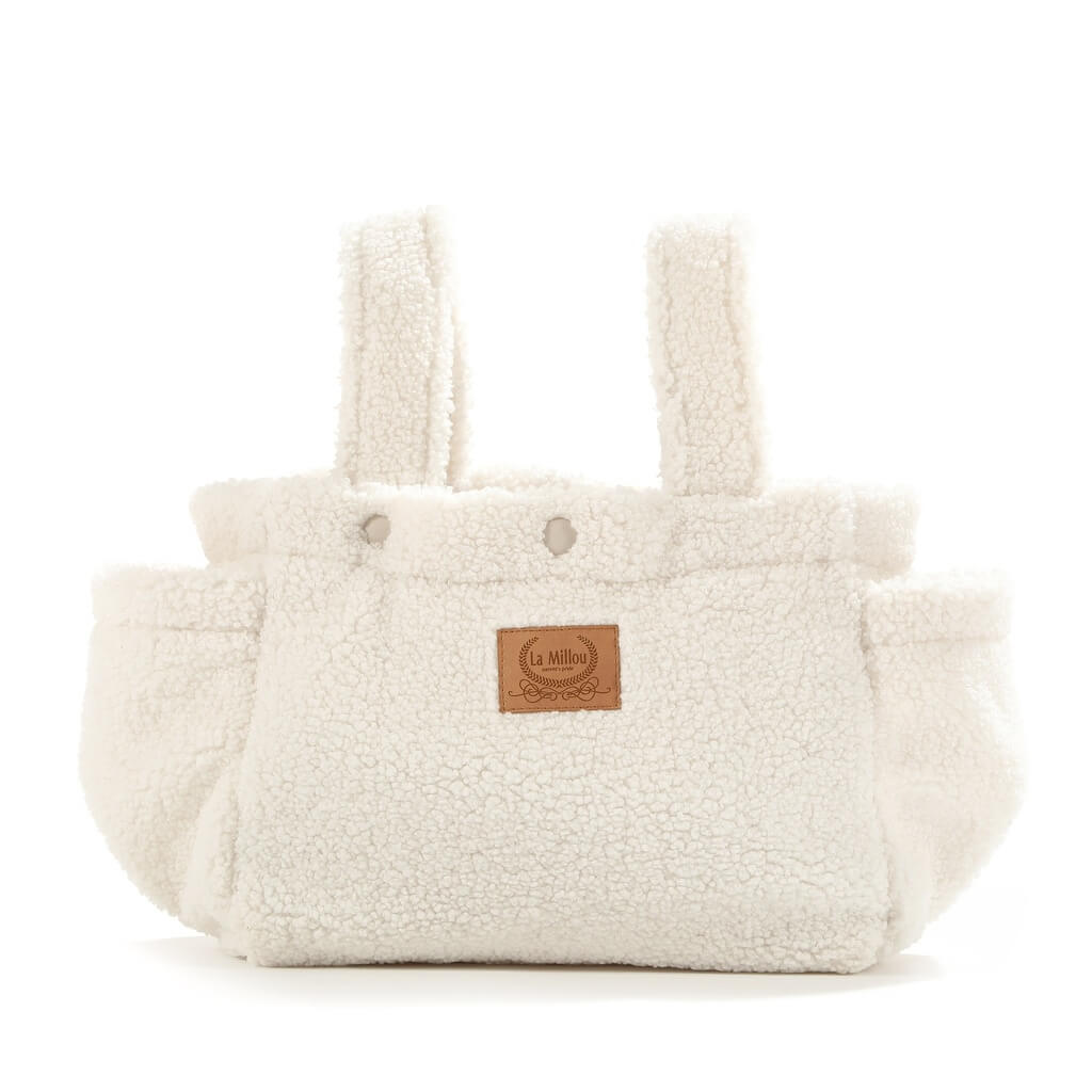 Dzięki przemyślanemu systemowi uchwytów, organizer można łatwo zawiesić na pałąku wózka lub nosić jako elegancką torebkę do ręki. Dodatkowo organizer posiada wszyte paski z pół-kółkami, dzięki którym, za pomocą zaczepów, zawiesisz go przy wózku lub, po doczepieniu paska, posłuży jako torba na ramię. Organizer jest zapinany na napę, a także posiada boczne kieszonki na butelkę lub bidon.