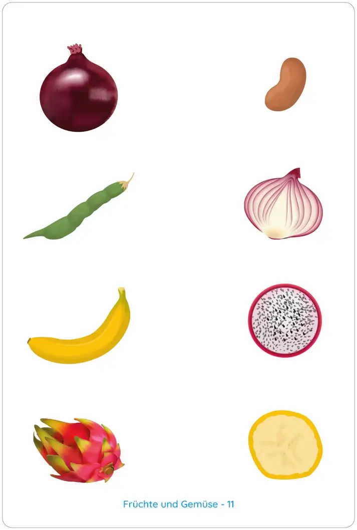- 15 kart pracy w tematyce owocowo warzywnej, do drewnianej ramki Lemo.