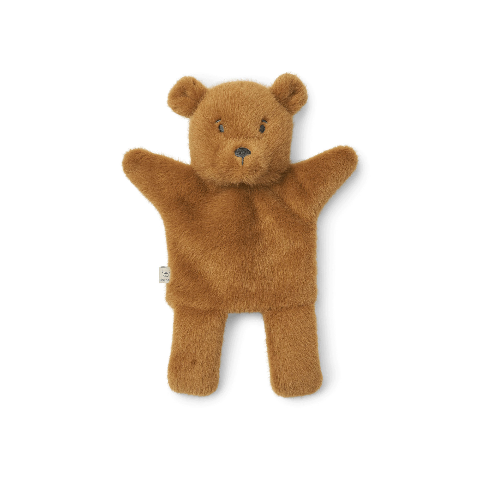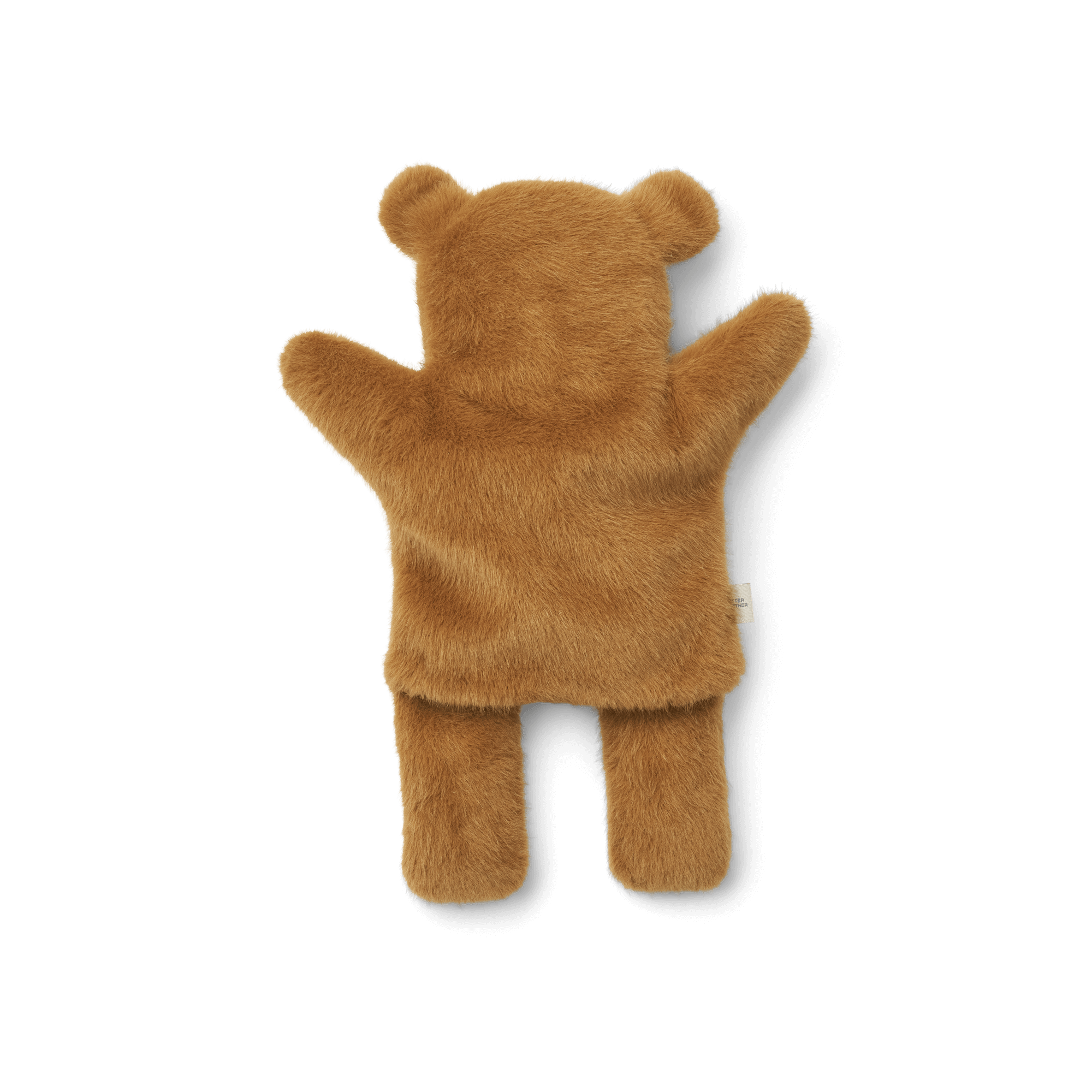 Pluszowa pacynka na rękę w kształcie misia, wykonana z wyjątkowo miękkiego, certyfikowanego wg GRS poliestru z recyklingu. Miękki i zabawny dodatek do zabawy, który pozwala maluchowi wystawiać przedstawienia i tańce dla rodziny i przyjaciół.
