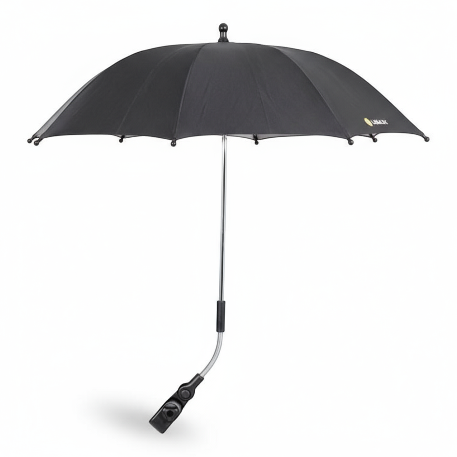 Posiada ochronę przeciwsłoneczną UPF 40. Pasuje do większości wózków i spacerówek. Można ją łatwo zamontować jak i zdemontować za pomocą specjalnej klamry zaciskowej. Dodatkowo parasolka posiada regulację konta nachylenia, dzięki czemu uzyskasz idealną pozycję, adekwatną do położenia słońca.