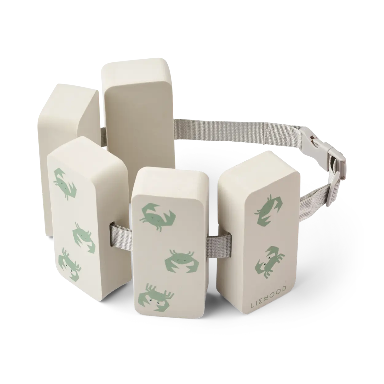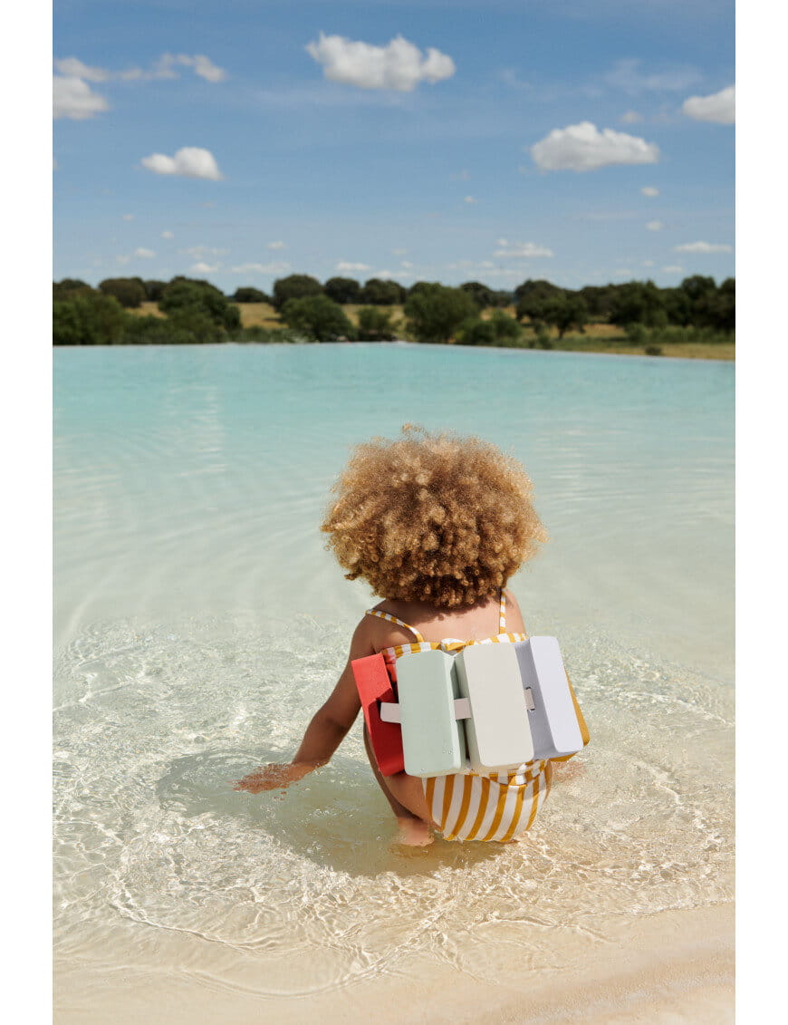 Zaprojektowany z myślą o bezpieczeństwie, pas ma pięć wypierających klocków, które ułatwiają dziecku naukę pływania. Dzięki łatwej w obsłudze klamrze na brzuchu zapewnia bezpieczne dopasowanie dla Twojego malucha.