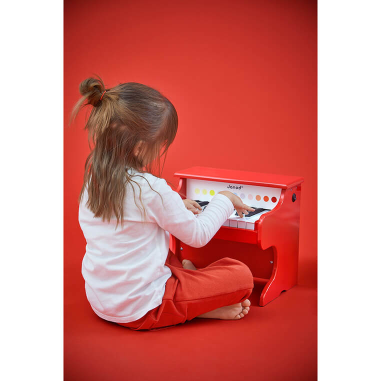 Wyposażone w 18 klawiszy, pianino Janod to idealny instrument do rozpoczęcia muzycznej przygody. Dołączona książeczka z nutami zawiera 4 proste, ale angażujące utwory, które Twoje dziecko z łatwością zagra, rozwijając jednocześnie zdolności manualne i czytania nut.