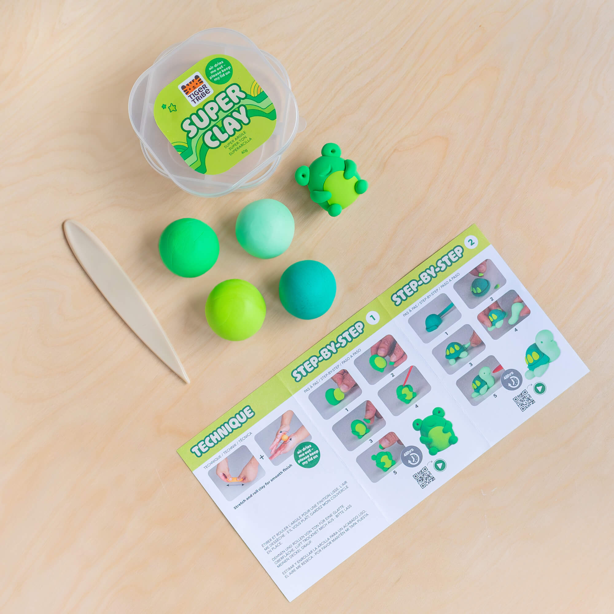 - miękka i łatwa do formowania masa schnąca na powietrzu - bez pieczenia, bez bałaganu.