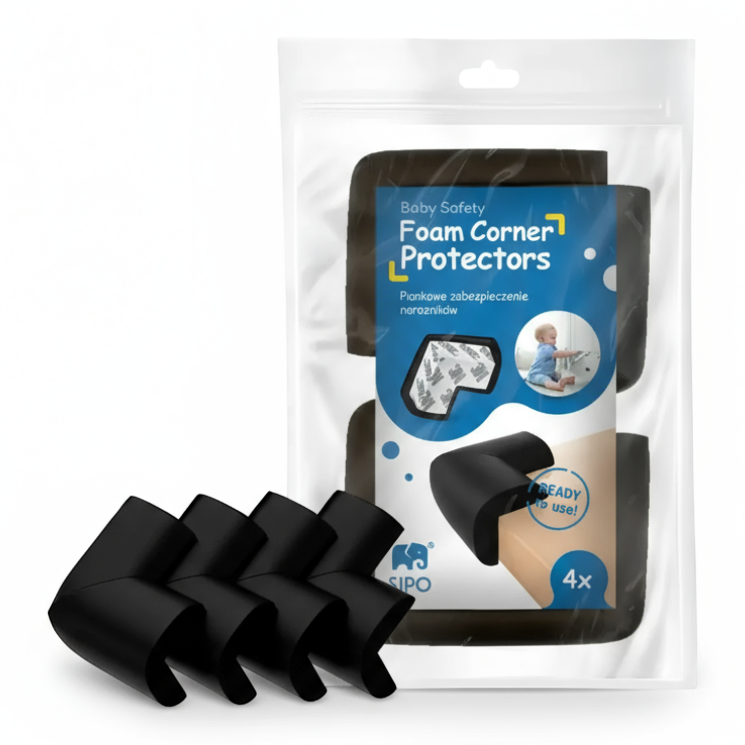 SIPO zestaw 4 sztuk piankowych narożników zabezpieczające ostre krawędzie mebli.