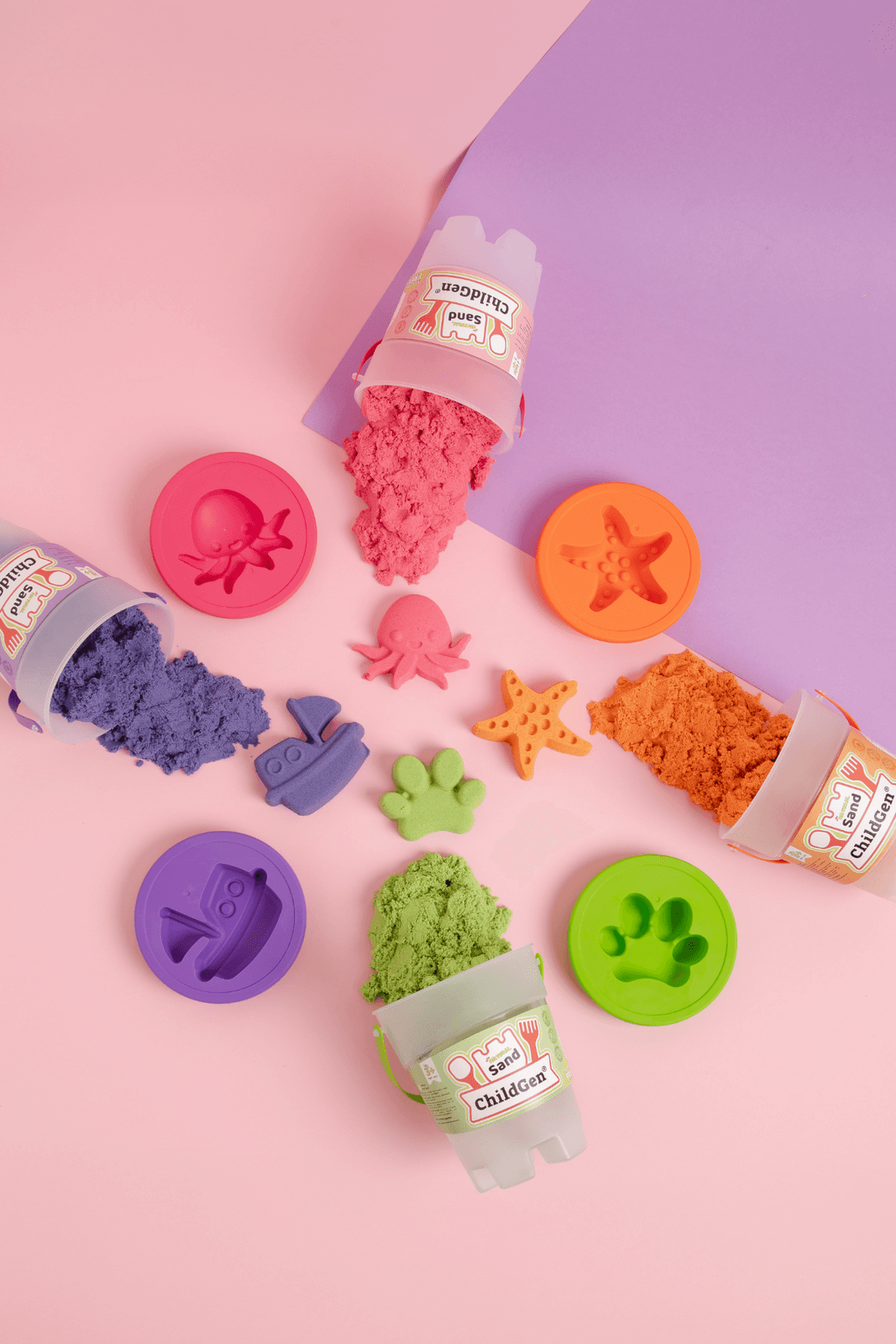 W przeciwieństwie do tradycyjnych piasków kinetycznych, które często bazują na oleju i silikonie, ChildGen stawia na 100% naturalności. Ten piasek powstaje z naturalnego piasku morskiego, który w połączeniu z wodą i naturalnym polimerem nabiera swoich "kinetycznych" właściwości, takich jak miękkość i efekt ruchu/"puchnięcia". Unikalnym dodatkiem są także spożywcze aromaty, które nawiązują do zapachów ciastolin, dzięki czemu zabawa staje się jeszcze przyjemniejsza i bardziej angażująca.