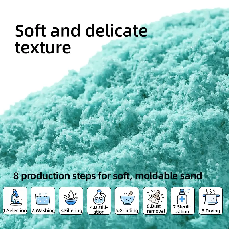 - Materiał: piasek kinetyczny + plastikowe foremki
