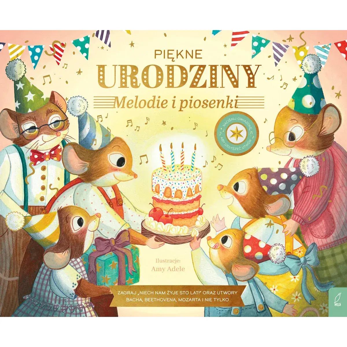 „Muzykalne Myszy. Piękne urodziny. Melodie i piosenki” to niezwykła, interaktywna i muzyczna księga, która przenosi najmłodszych w świat radości, zabawy i muzyki klasycznej