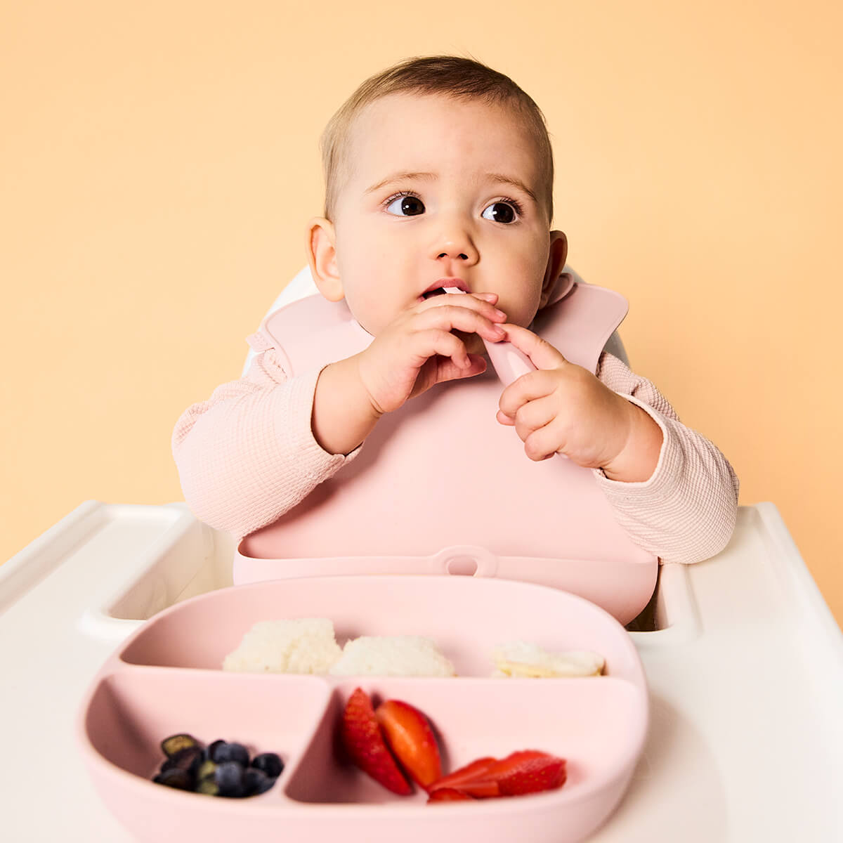 - Wsparcie BLW: Zestaw dostosowany do metody Baby-Led Weaning, zachęcając dziecko do samodzielnego chwytania i jedzenia.