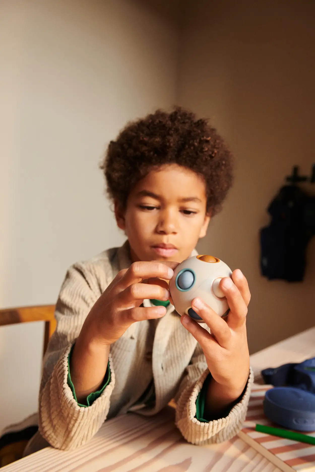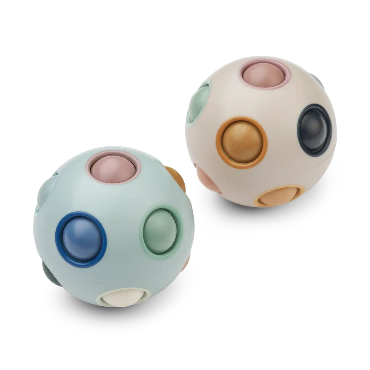 Kolorowa piłeczka Solene składa się z wielu mniejszych, kolorowych piłeczek, które dziecko musi dopasować kolorem do obręczy.
