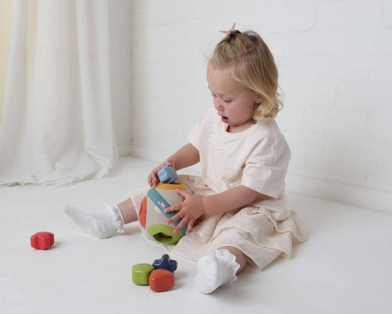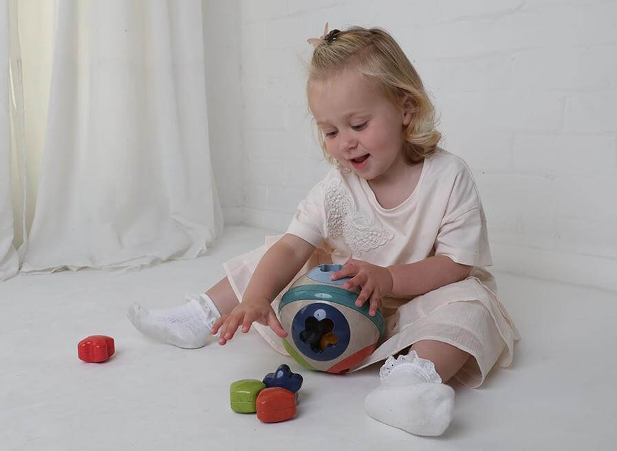Piłka do sortowania kształtów TOLO BIO to wielofunkcyjna zabawka, która może być używana zarówno jako sorter, jak i piłka do zabawy