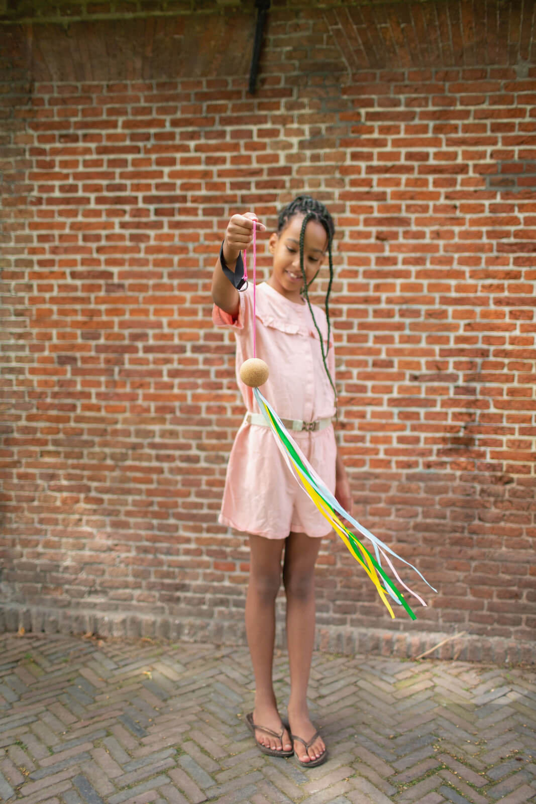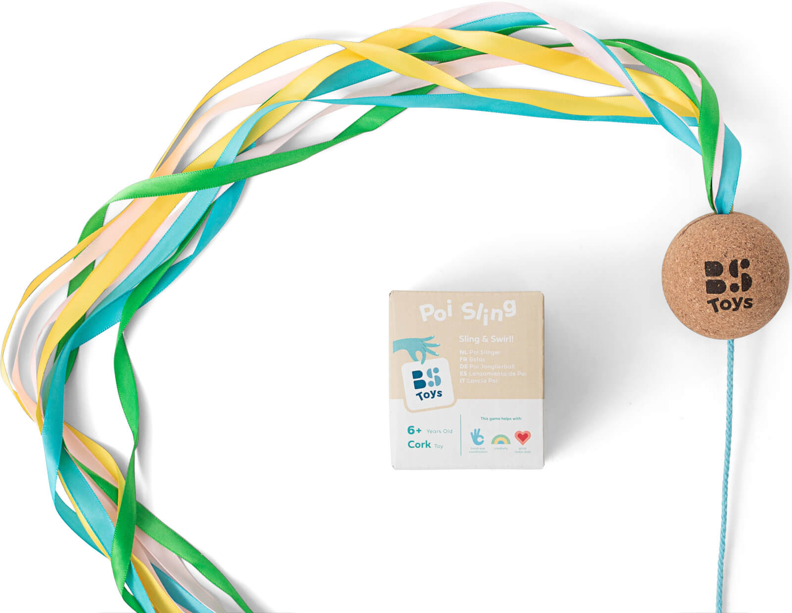| Liczba elementów: | 1 drewniana piłka (6cm) + 8 kolorowych wstążek + uchwyt ze sznurkiem |