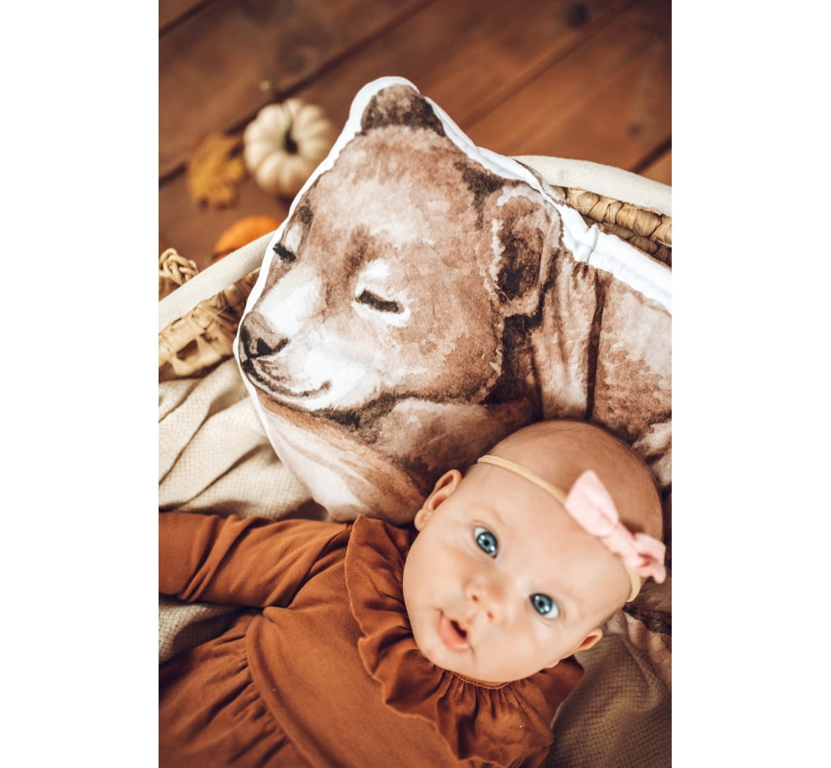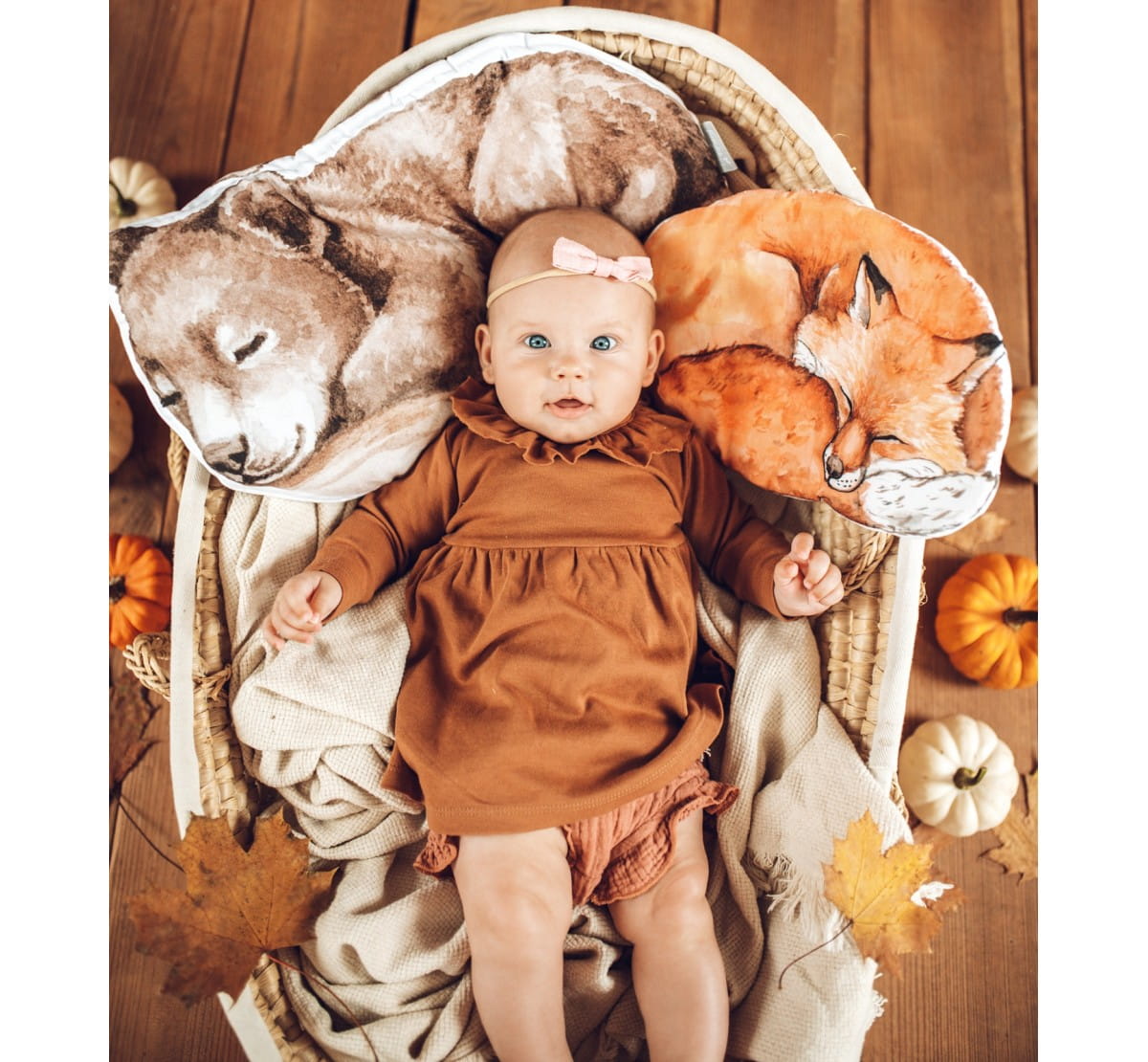 Jak można ją najprościej opisać? Jest słodka, urocza z jedynym w swoim rodzaju wzorem projektowanym specjalnie dla nas. Może to być pierwsza przytulanka, przyjaciel pierwszych podróży czy spacerów. Poduszeczka jest płaska, wykonana z najwyższej jakości materiałów bezpiecznych dla dziecka.