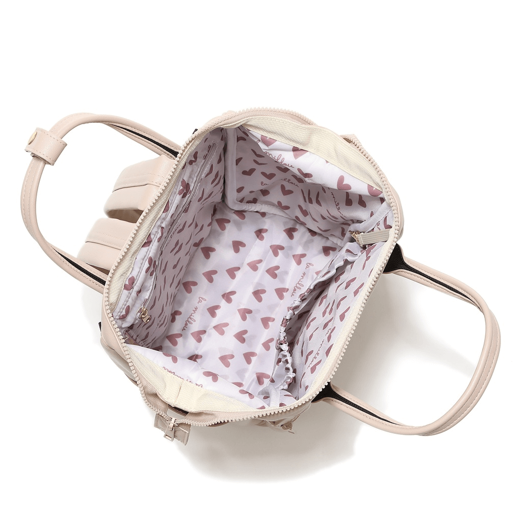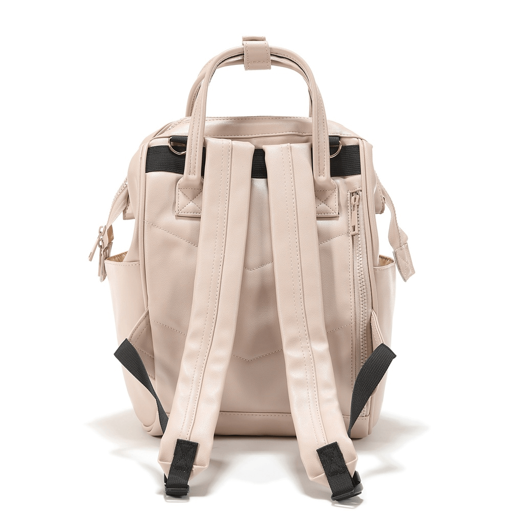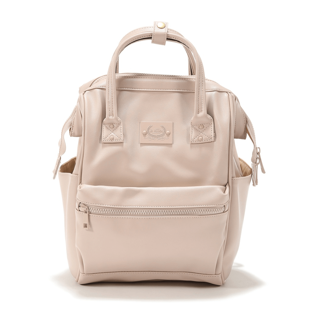 - Oprócz szelek do noszenia na plecach dwie rączki, które można spiąć ze sobą skórzaną opaską i przenosić plecak jak torbę - w ręce.