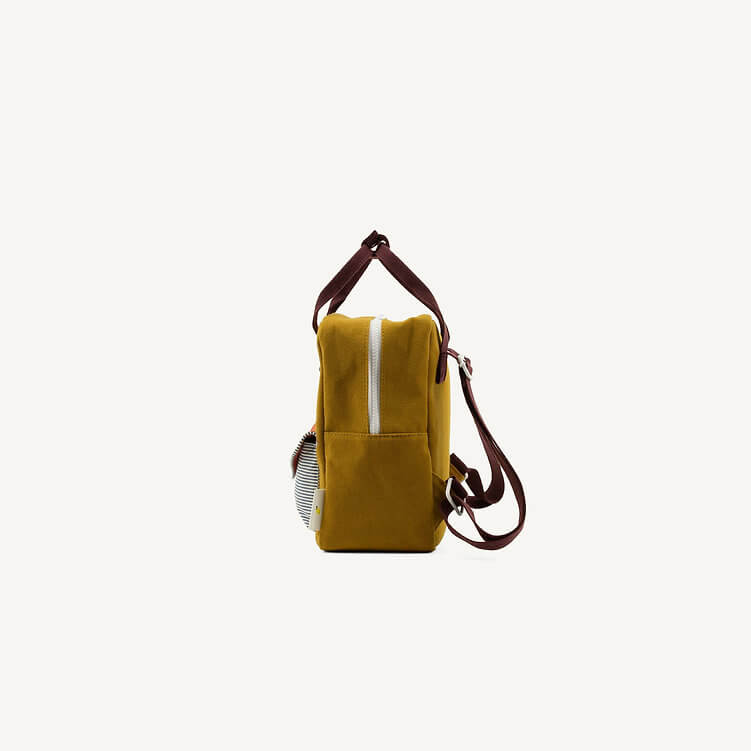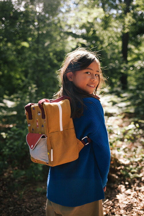 Ten wyjątkowy, mały plecak wykonany jest z grubego, wytrzymałego płótna (canvas). Na froncie znajduje się dodatkowa kieszeń na drobiazgi, a na zewnętrznej stronie plecaka umieszczono piękne, przygodowe ilustracje, które dodają mu charakteru. Wnętrze wyłożone jest wodoodporną podszewką z motywem żołędzi, która chroni zawartość przed wilgocią. Plecak posiada wysokiej jakości zamki YKK, a regulowane szelki zapewniają wygodę podczas noszenia.