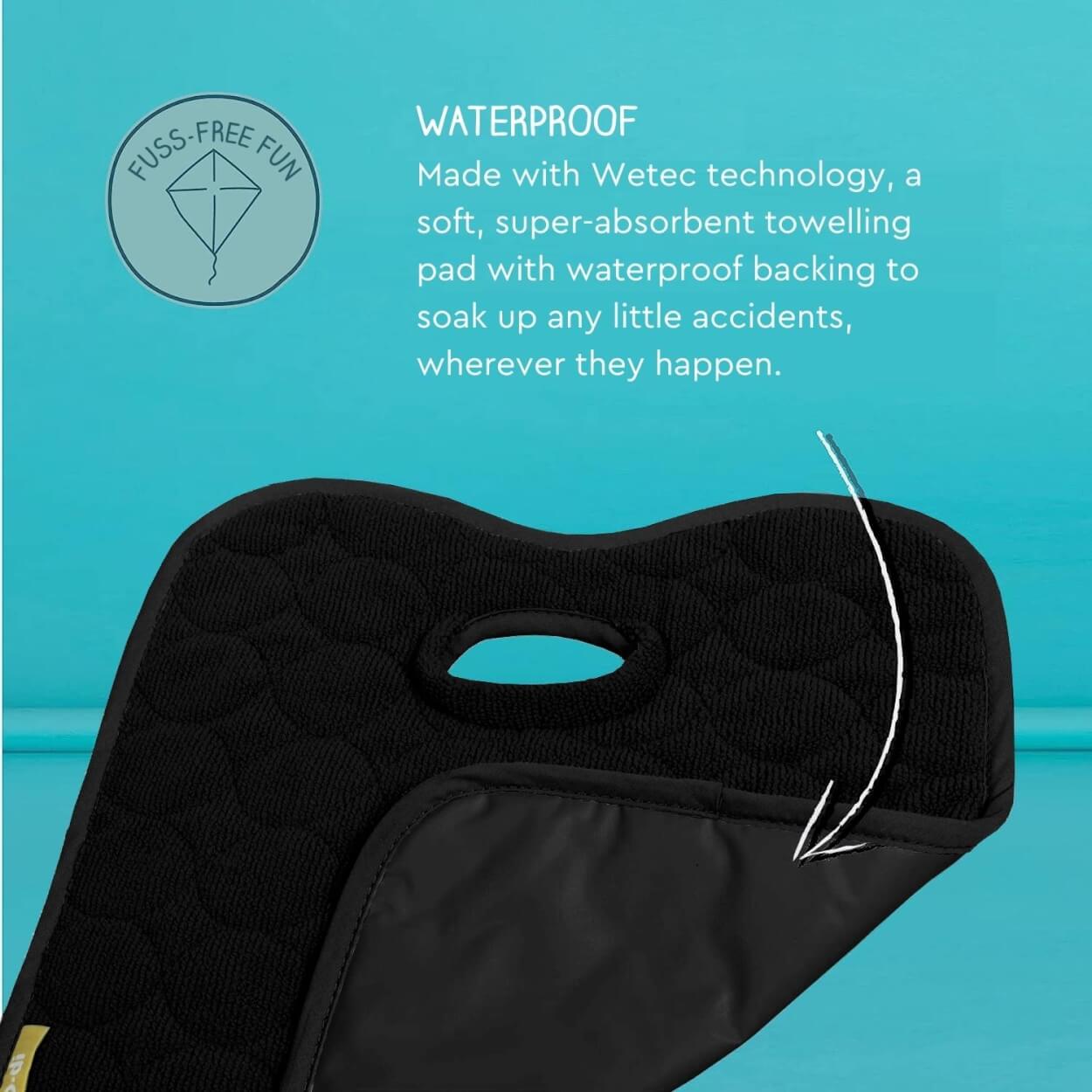 Podkładka Wetec Rain Cloud Koo-di to praktyczne rozwiązanie dla rodziców, którzy są na etapie odpieluchowywania dziecka. Wkładka doskonale wchłania ciecz oraz posiada wodoodporny spód, dzięki czemu bez problemu ochroni fotelik samochodowy, wózek czy krzesełko przed wilgocią. Jest to produkt uniwersalny i pasuje do większości dostępnych na rynku fotelików samochodowych i wózków dziecięcych. Dodatkowo podkładka jest wielokrotnego użytku, ponieważ można ją wyprać w pralce. W zestawie znajduje się także praktyczna torebka strunowa na mokre rzeczy. Z podkładką Wetec Rain Cloud Koo-di łatwiej i wygodniej dbać o higienę dziecka oraz o czystość wózka czy fotelika samochodowego.