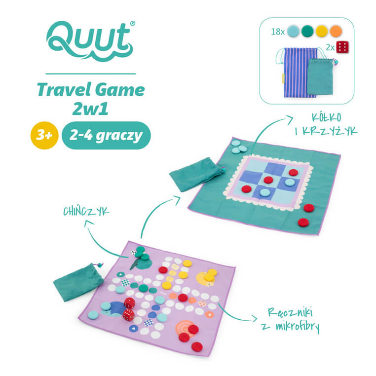 Podróżny, wodoodporny zestaw gier 2w1 Chińczyk oraz Kółko i Krzyżyk