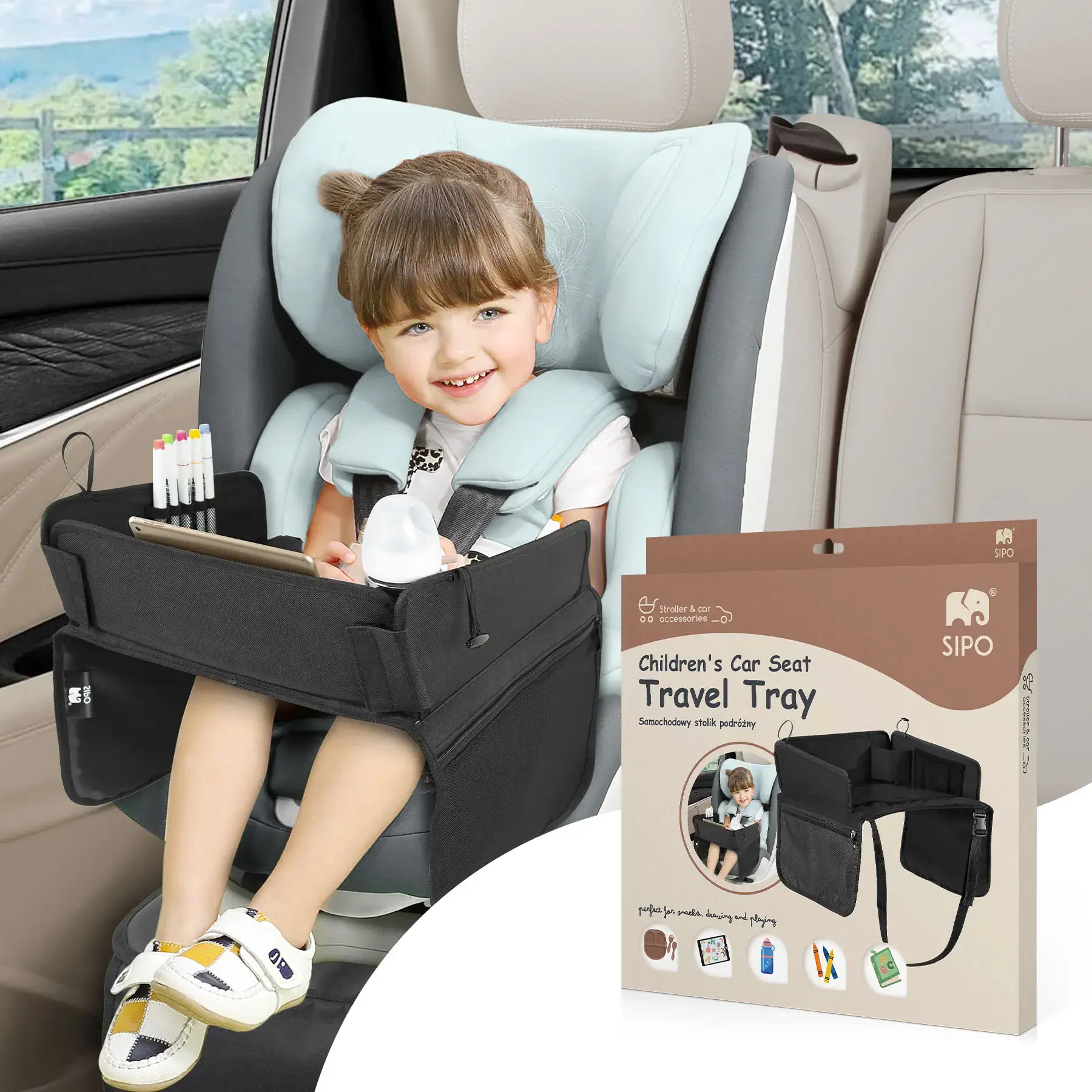 Podróżny stolik do fotelika samochodowego dla dziecka