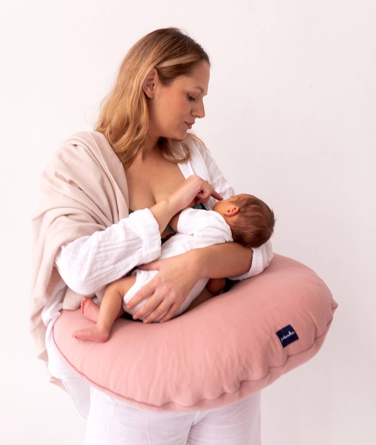 Środkowa część poduszki została lekko pogrubiona i powiększona, dzięki czemu dziecko jest zawsze ułożone na właściwej wysokości – tuż przy piersi mamy. Taka budowa umożliwi mamie przyjęcie wygodnej, wyprostowanej, odciążającej kręgosłup pozycji podczas karmienia piersią, równocześnie zapewniając dziecku stabilne i bezpieczne oparcie.