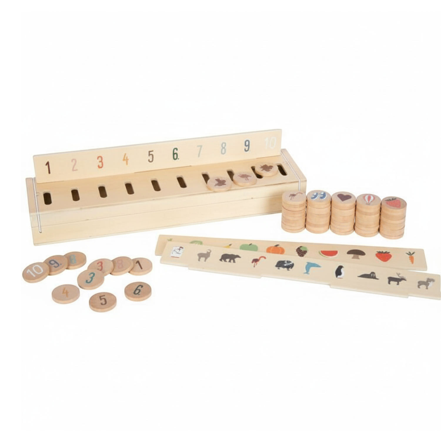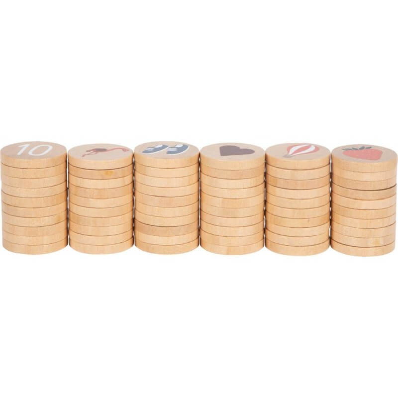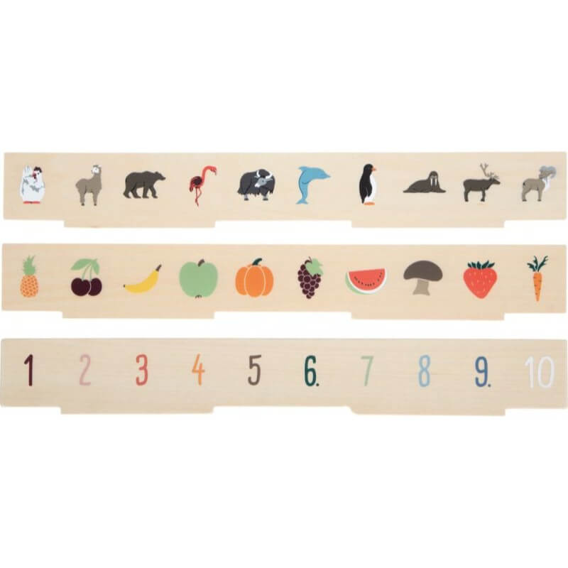 Zabawa polega na odszukaniu wśród 60 żetonów obrazki odpowiadające te widoczne na podłużnym panelu stanowiącym wzór. W komplecie przewidziano łącznie 3 dwustronne panele w następującej tematyce: