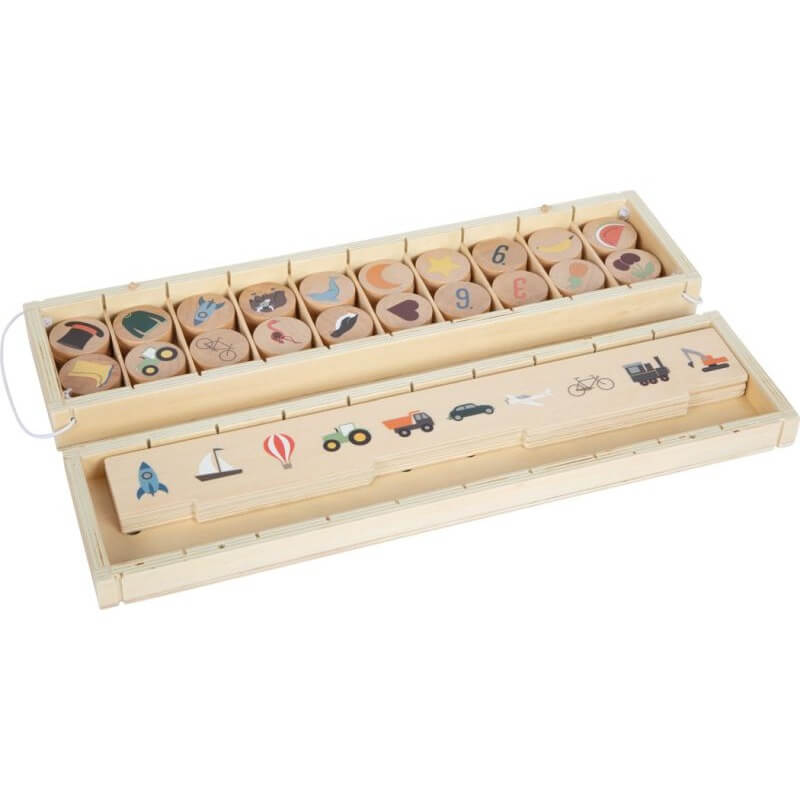Edukacyjny sorter dla dzieci Odkrywca świata Small Foot można zabrać ze sobą w podróż (zamknięcie na elastyczne zatrzaski, przegródki organizacyjne).