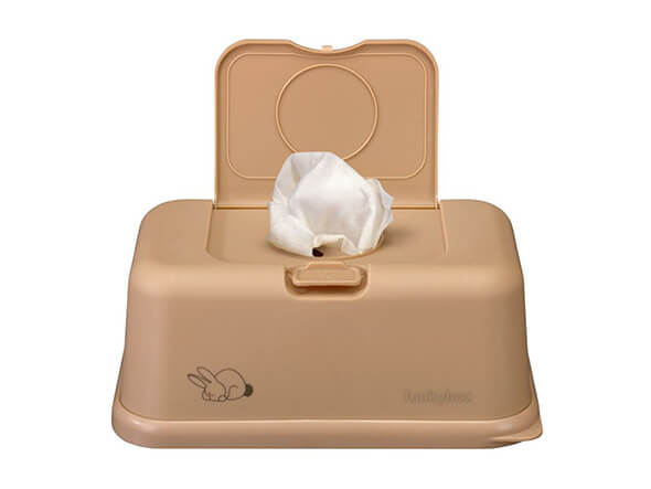 - posiada elastyczne dno, pozwalające w prosty sposób napełniać pojemnik nowymi chusteczkami