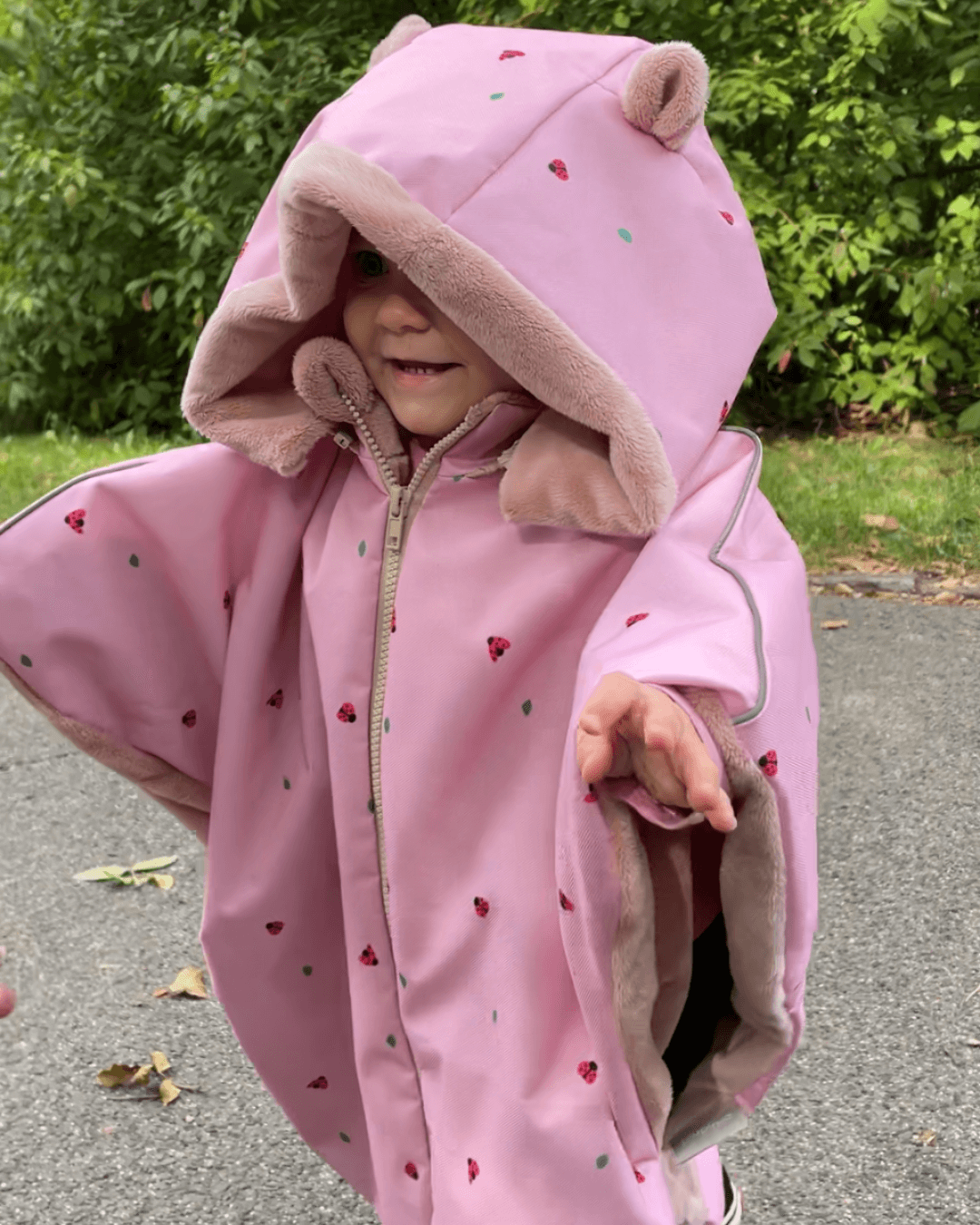 - Ponczo idealnie sprawdzi się również jako kurtka przy zabawach na zewnątrz, podczas jazdy na rowerze, na hulajnodze oraz przy jesiennych spacerach.