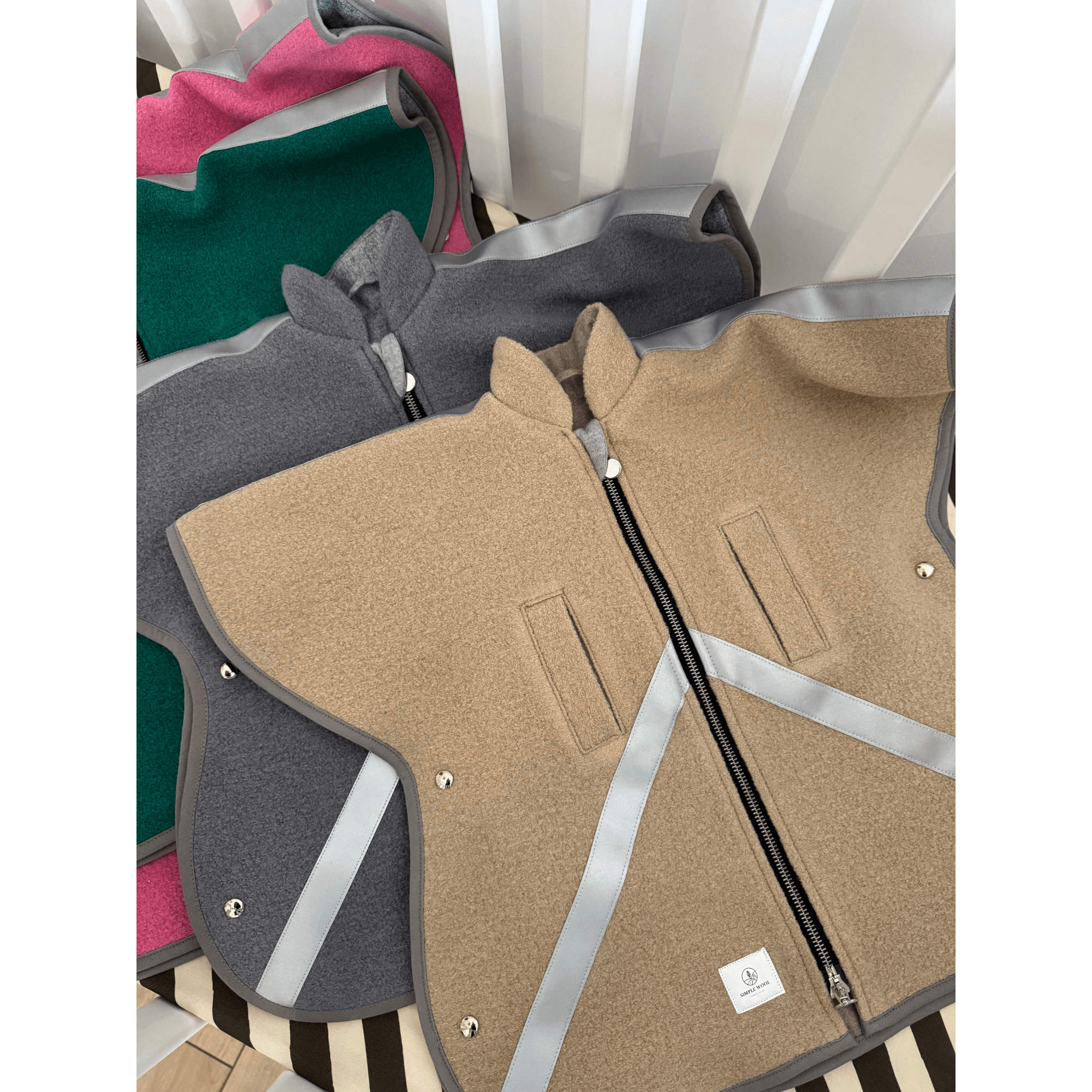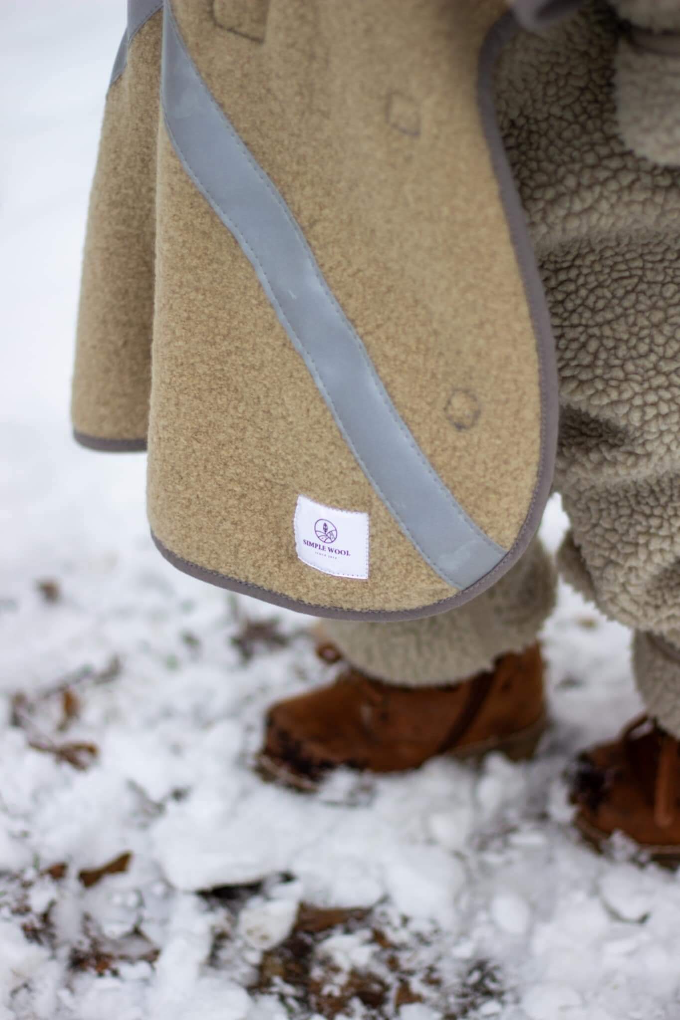 Ponczo w 100% wykonane z materiałów trudnopalnych tak jak wkładka do fotelika tworzy razem z nią duet idealny. Dziecko siedzi na cudownej wełnie merino oraz jest nią okryte. A wełna ta zapewnia idealną fizjologiczną temperaturę ciała. Odprowadza nadmiar ciepła, a gdy jest zimno zatrzymuje ciepło przy dziecku. To materiał idealny a przez swoje niesamowite właściwości jego włókna są określane jako inteligentne.