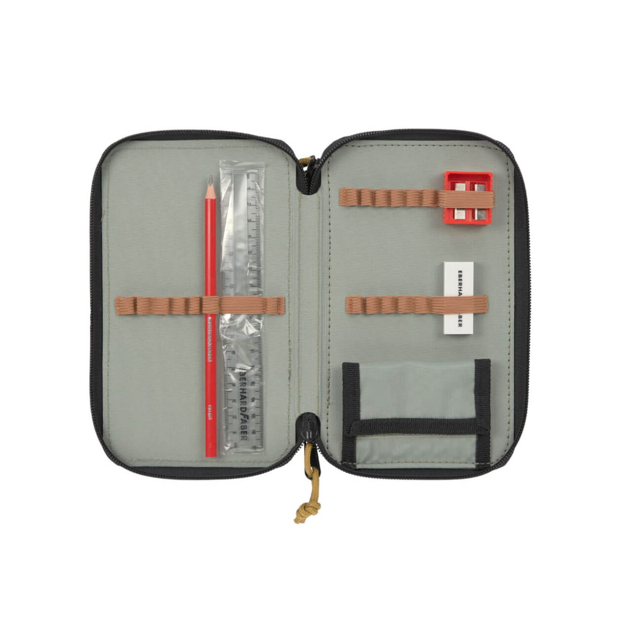 Ładny i praktyczny trzy poziomowy piórnik z wyposażeniem niemieckiej marki LASSIG
