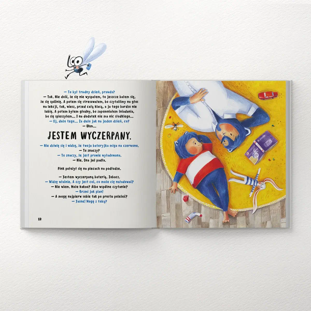 Prawie PÓŁ MILIONA sprzedanych egzemplarzy! Kilkukrotnie nominowana do nagrody Bestsellery Empiku! Pink to mały niebieski stwór, który jedno ucho ma okrągłe, a drugie trójkątne. Nie lubi występować - zawsze się wtedy denerwuje. Jest mu przykro, kiedy Fiszka go obgaduje. A złości się, gdy coś mu nie wychodzi albo ktoś go do czegoś zmusza.