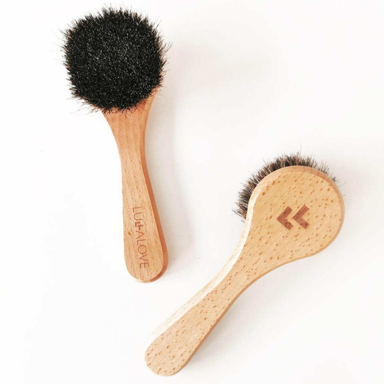 Przed stworzeniem tej szczotki, testowaliśmy różne włosia. Jednak i tampico (agawa), szczecina czy nawet delikatna kozina, były zbyt ostre dla cienkiej skóry twarzy. W szczotkowaniu bowiem chodzi nie o zadrapania i ból, a pobudzenie krążenia (efekt lekkiego zaczerwienienia), prawidłowy drenaż limfatyczny i delikatne złuszczenie martwego naskórka. Nie jest to typowy peeling ani zwykły masaż.