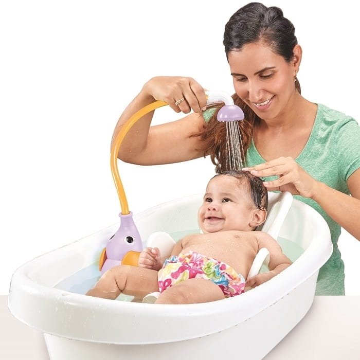 Słuchawka prysznica z przyciskami umożliwia kontrolowanie łagodnego, uspokajającego przepływu wody. Prysznic jest bezpieczny i łatwy w manewrowaniu. Delikatny strumień umożliwia łatwy dostęp do mycia szyi i włosków. Miękka konstrukcja zapewnia większe bezpieczeństwo dziecka. Prysznic jest idealny dla noworodków, niemowląt i małych dzieci! Może być używany jako zabawka kąpielowa w późniejszych etapach. Siedzące dzieci mogą bawić się prysznicem jako zabawką kąpielową. Zdolność dziecka do kontrolowania przepływu wody sprawia, że zabawa w wannie jest samą przyjemnością. Prysznic zaprojektowany z myślą o łatwości użytkowania przez rodziców i zapewniający delikatny komfort dla dzieci. Zaprojektowany z miłości do czasu spędzonego na zabawie w kąpieli!