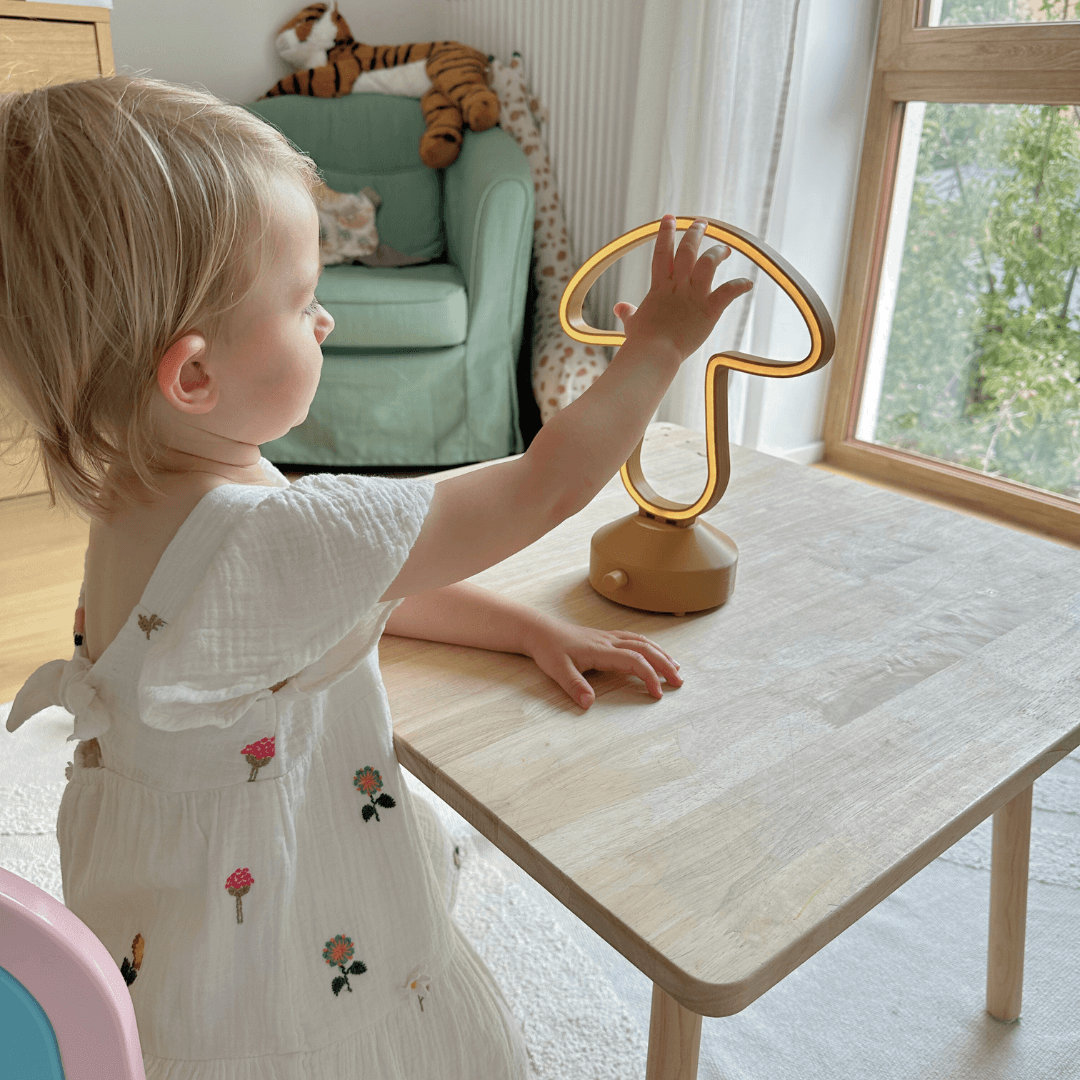 Dziecięca lampka LED dopasuje się do Twoich potrzeb. Ustaw mocniejsze światło gdy czytasz, łagodniejsze kiedy Twój maluszek śpi.