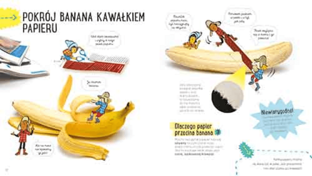 Czy kartką papieru da się pokroić banana? Czy można jeść papier? Dlaczego kulka papieru spada szybciej niż arkusz? To tylko niektóre z pytań, na które odpowiedzi znajdziesz w części „Papier. Akademia mądrego dziecka. Przygody z nauką”. Eksperymenty z udziałem tego surowca tłumaczą też czym jest opór powietrza i tarcie.