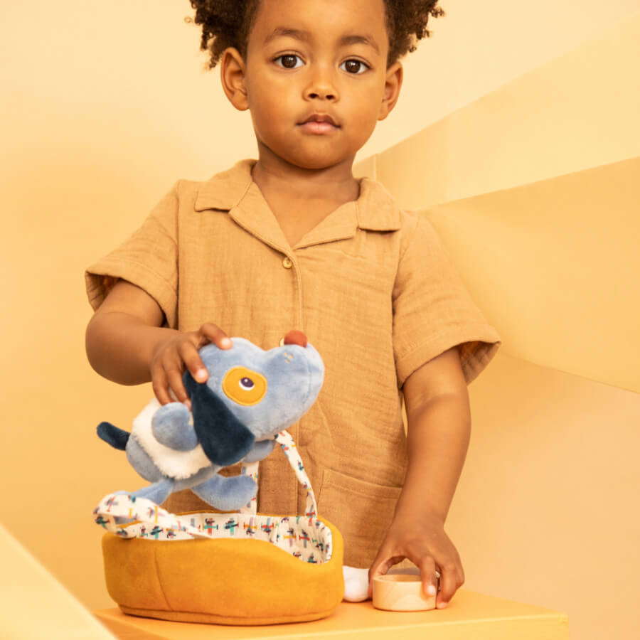Przytulanka Piesek Jules z koszyczkiem i akcesoriami belgijskiej marki Lilliputiens jest idealna do tulenia, usypiania, uspokajania, zabierania na spacer czy zabawy