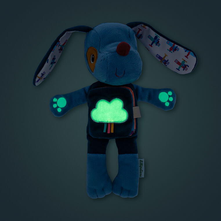 Brzuszek pieska to miękka książeczka, na stronach której pojawiają się zwierzątka z ekipy Lilliputiens m.in. Kaczorek Gaspard czy Kotka Jeanne, prezentujące swoją wieczorną rutynę przed snem – zakładanie piżamki, mycie ząbków czy buziak na dobranoc. Dodatkową atrakcją jest chmurka na pierwszej stronie oraz wnętrze łapek pieska, które świecą w ciemności. Dzięki fluorescencyjnym elementom Jules staje się doskonałym towarzyszem do zasypiania i doskonałą alternatywą dla lampki nocnej – delikatnie rozprasza mrok, daje dziecku poczucie bezpieczeństwa i ułatwia odnalezienie przytulanki w nocy.