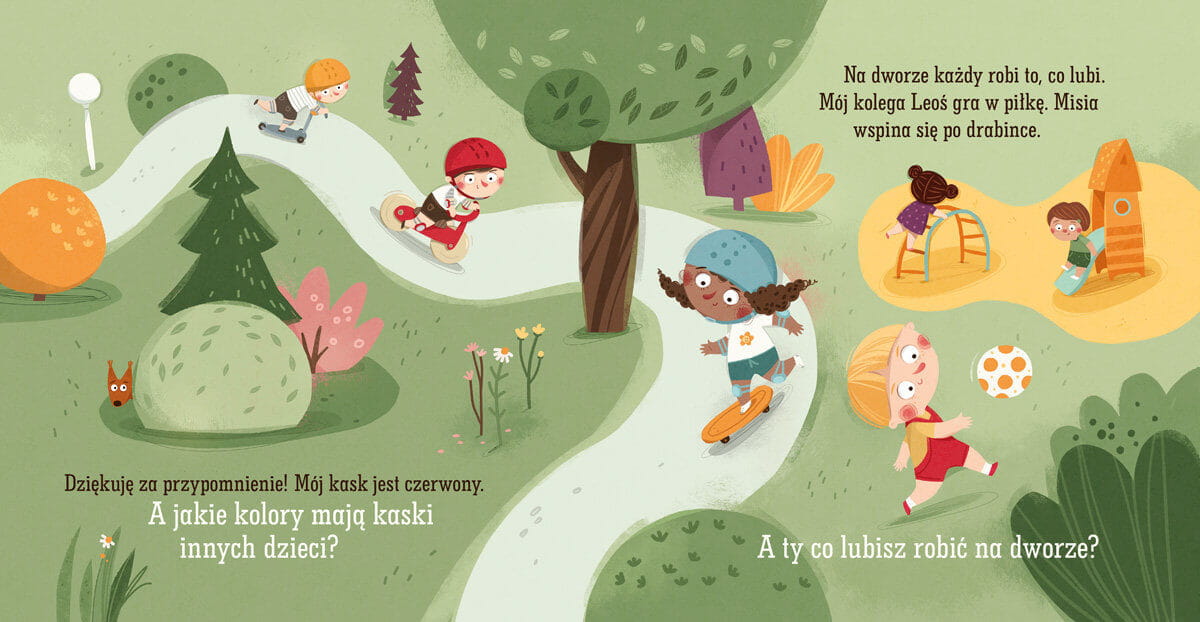 Pucio uwielbia również jeździć na torze rowerowym. Wkłada wtedy swoje odjazdowe ochraniacze i… zaraz, zaraz, czy czegoś tu nie brakuje? Podpowiesz mu, o czym zapomniał? Co za pech, nie ma też bidonu! Teraz trzeba kupić coś do picia. Zrób z Puciem zdrowe zakupy na straganie.