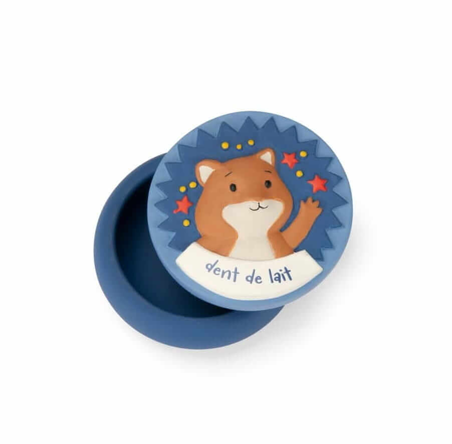 Pojemniczek na pierwszy ząbek firmy Moulin Rotty posiada ciekawy design i starannie dobraną kolorystykę. Pierwszy ząbek jaki wypadnie stanie się pamiątką na długie lata.