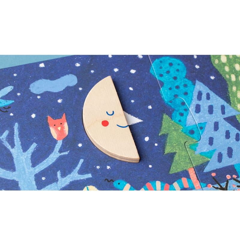 Ułóż puzzle i włóż drewniane elementy w odpowiednie miejsca.
