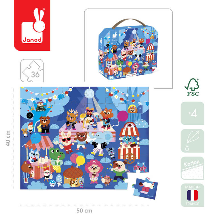 Puzzle w walizce Przyjęcie 36 elementów francuskiej marki Janod